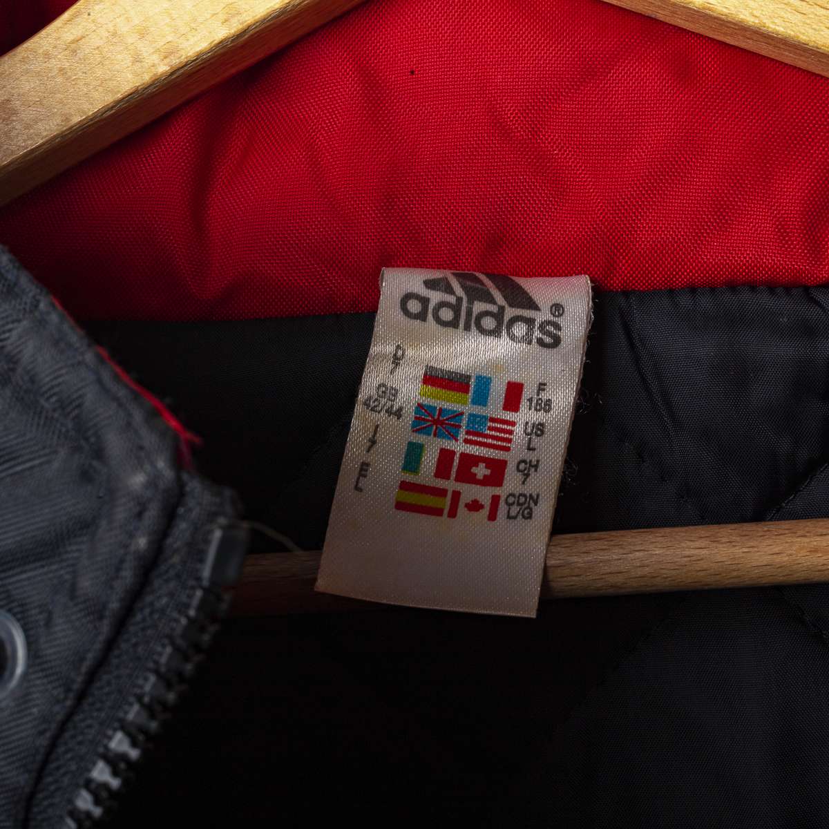 Giaccone panchina di colore nero con dettagli rossi prodotto per il Milan nella stagione 1999/2000. Logo AC Milan e le due stelline ricamate lato cuore; Logo Adidas ricamato in bianco. Taglia L.