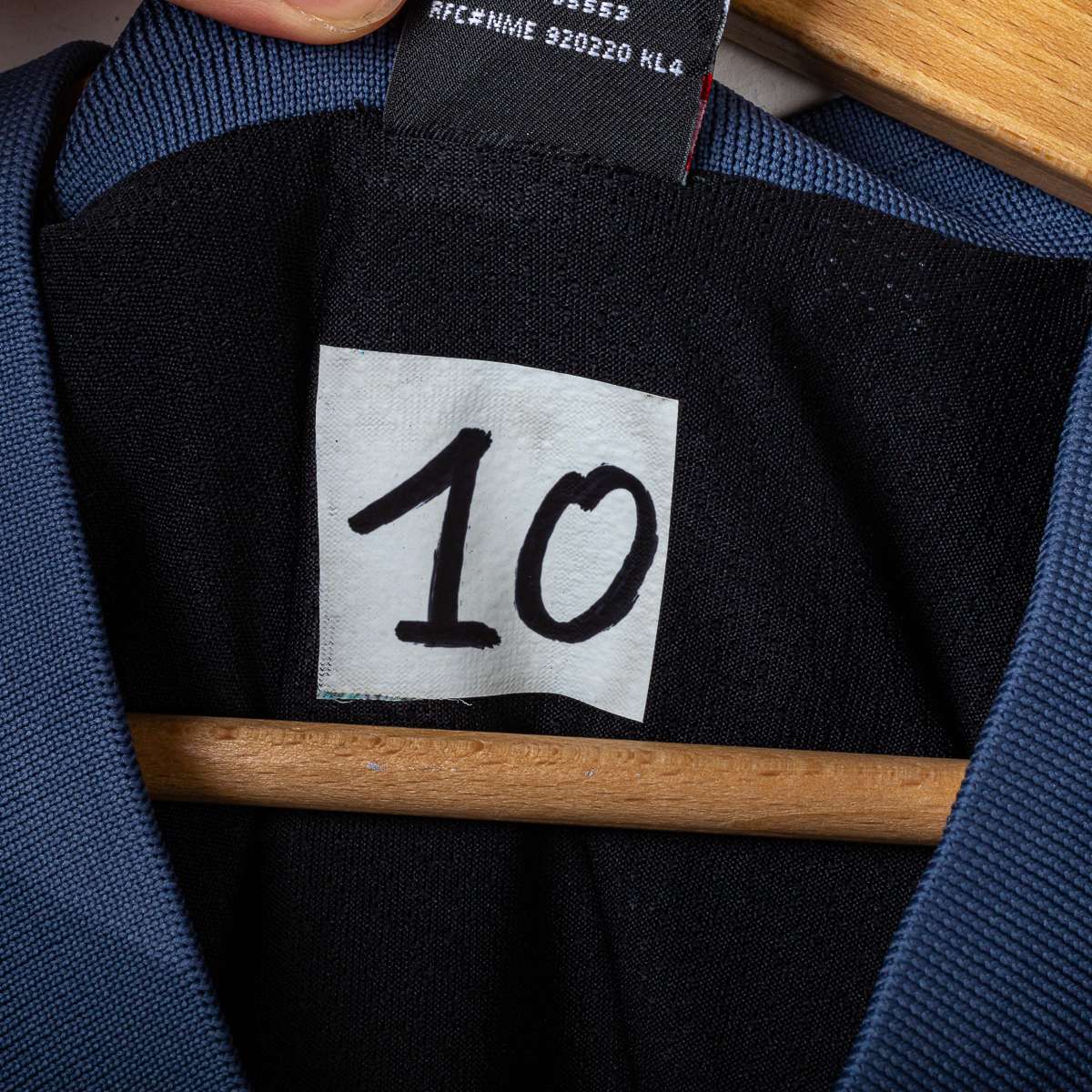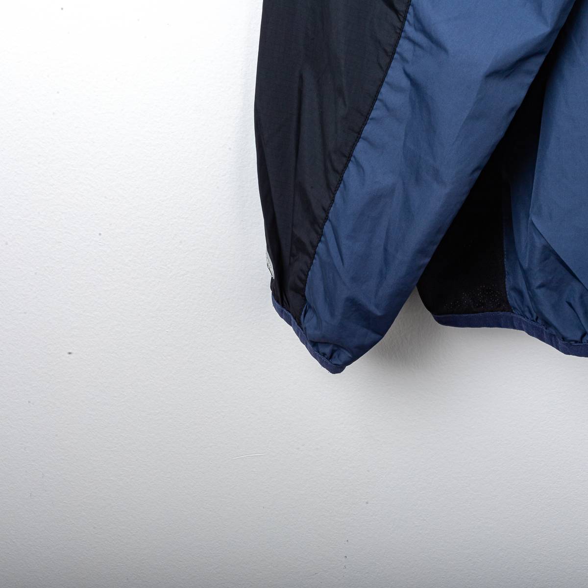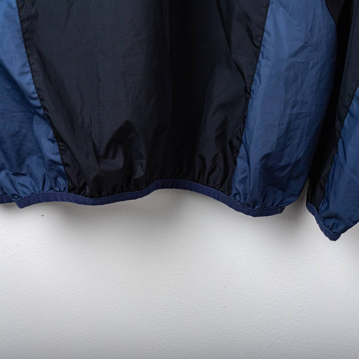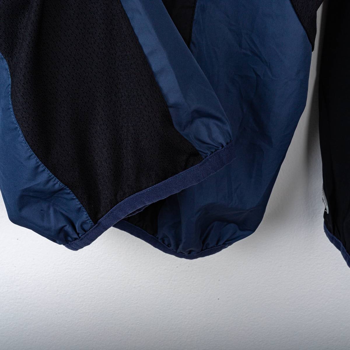 Giacca training ufficiale FC Internazionale Milano stagione 2000/2001, prodotta da Nike. Modello tecnico da allenamento realizzato in tessuto leggero sintetico, pensato per lo staff e i giocatori durante le sessioni di training. Colorazione nera con inserti blu scuro a contrasto e pannellature ergonomiche tipiche del design Nike dei primi anni Duemila. Collo a V elasticizzato, fondo e polsini elasticizzati per una vestibilità comoda e funzionale. Logo Nike ricamato sul petto lato destro, Stemma Inter 1908 applicato lato cuore. Sponsor Pirelli stampato in grande formato sul fronte. Sul retro è presente la scritta “INTER” cerchiata, elemento iconico dei capi training dell’epoca. Etichetta interna Nike Team con indicazione taglia XL e produzione Made in Thailand.