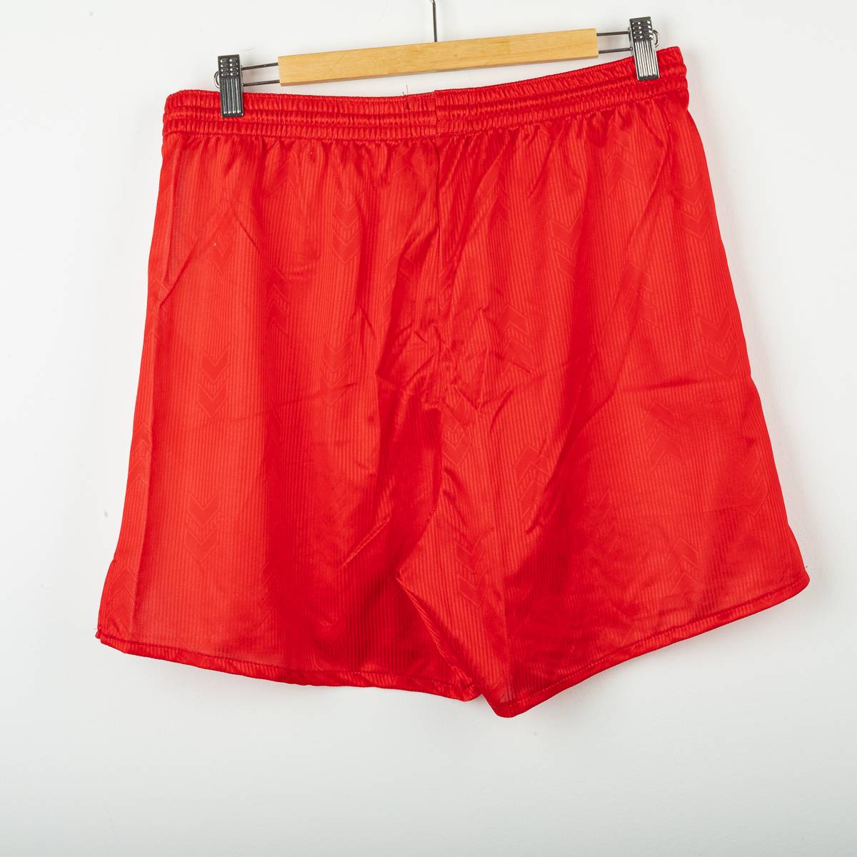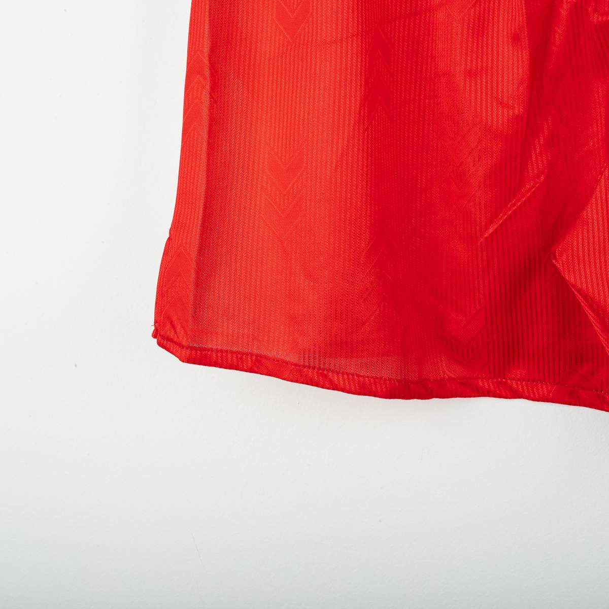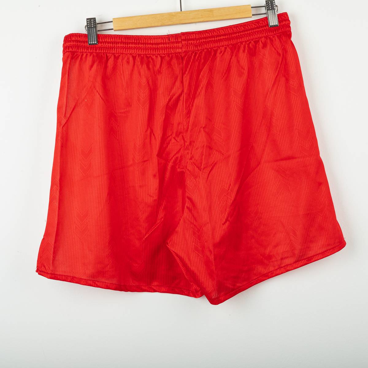 Completo home del Rimini Calcio stagione 2004/2005, prodotto da Hummel, composto da maglia e pantaloncini originali. Maglia a manica corta con classico design biancorosso a riquadri verticali e texture tono su tono con chevron Hummel. Colletto a V in maglia bianca con profilo rosso. Sul fronte sono presenti il logo Hummel , lo stemma Rimini Calcio ricamato lato cuore e lo sponsor Riviera di Rimini – La Riviera dei Parchi applicato in stampa. Sul retro numero 10 stampato. Pantaloncini coordinati con chevron Hummel laterali e stemma Rimini Calcio applicato. Taglia da etichetta L. Tessuto 100% poliestere. Completo originale d’epoca in buone condizioni generali, con normali segni di utilizzo e leggere tracce di usura sulla stampa del numero.