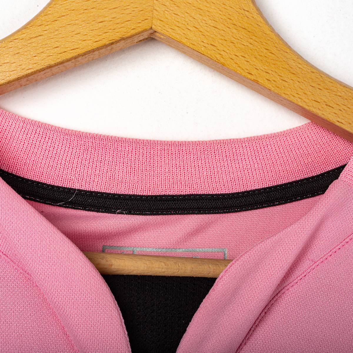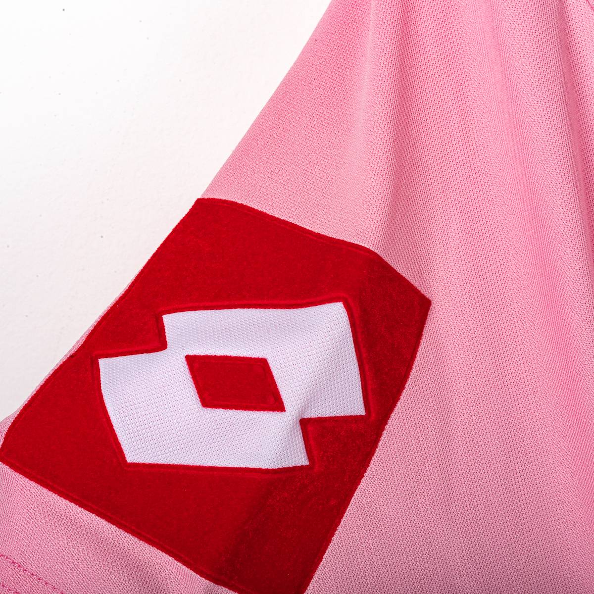 Maglia home dell’U.S. Città di Palermo stagione 2006/2007, prodotta da Lotto. Modello di colore rosa con inserti neri a contrasto sui fianchi e sulle spalle, colletto a V con dettaglio nero interno. Sul fronte sono applicati il logo Lotto e lo stemma U.S. Città di Palermo ricamato lato cuore. Patch ufficiale Lega Calcio Serie A TIM applicata sulla manica. Sul retro personalizzazione ufficiale Cassani 16 con nome e numerazione stampati in nero. Dettagli Lotto applicati sulle maniche. Taglia da etichetta L. Maglia originale d’epoca in buone condizioni generali, con lievi segni di utilizzo e leggere pieghe sulla stampa, coerenti con l’età del capo.