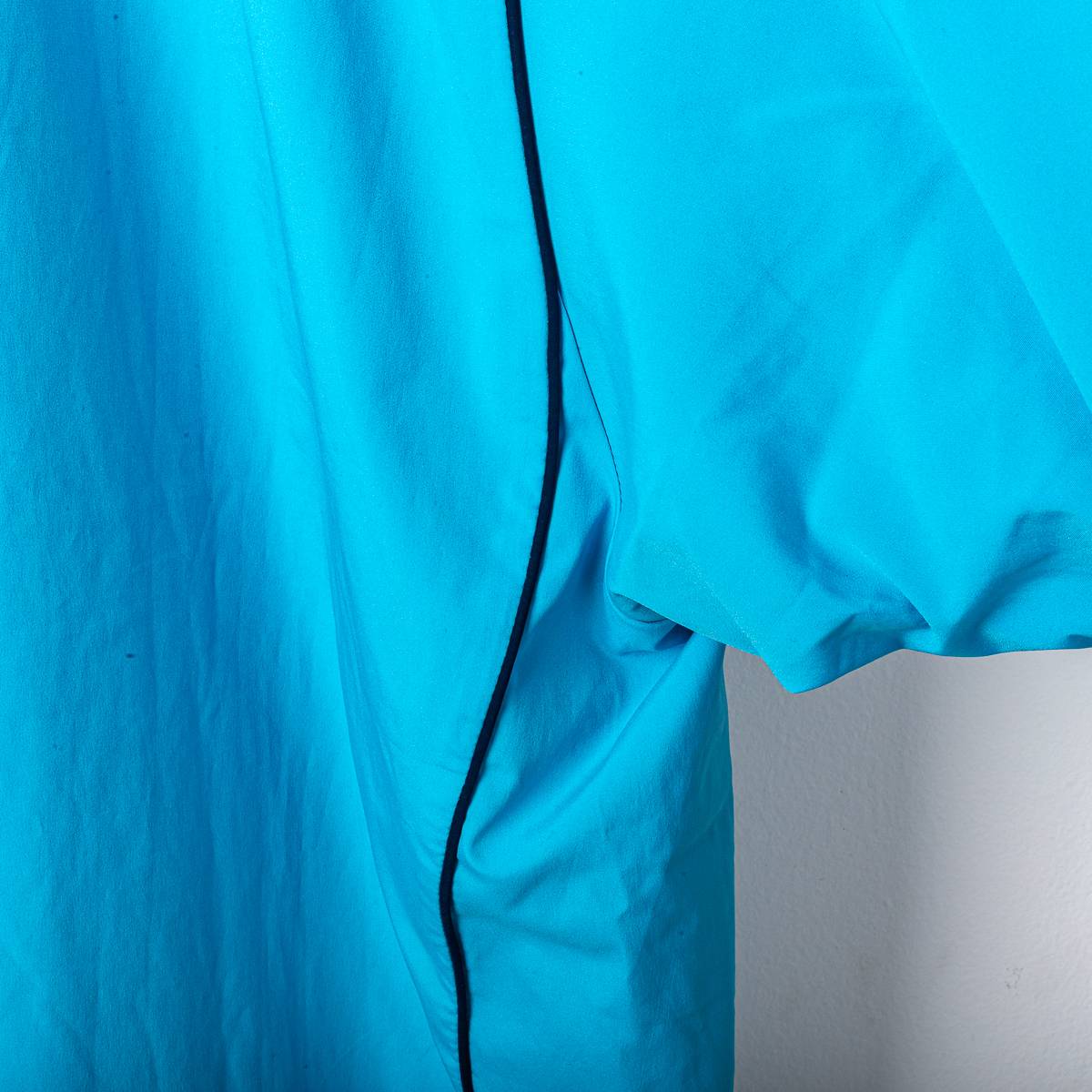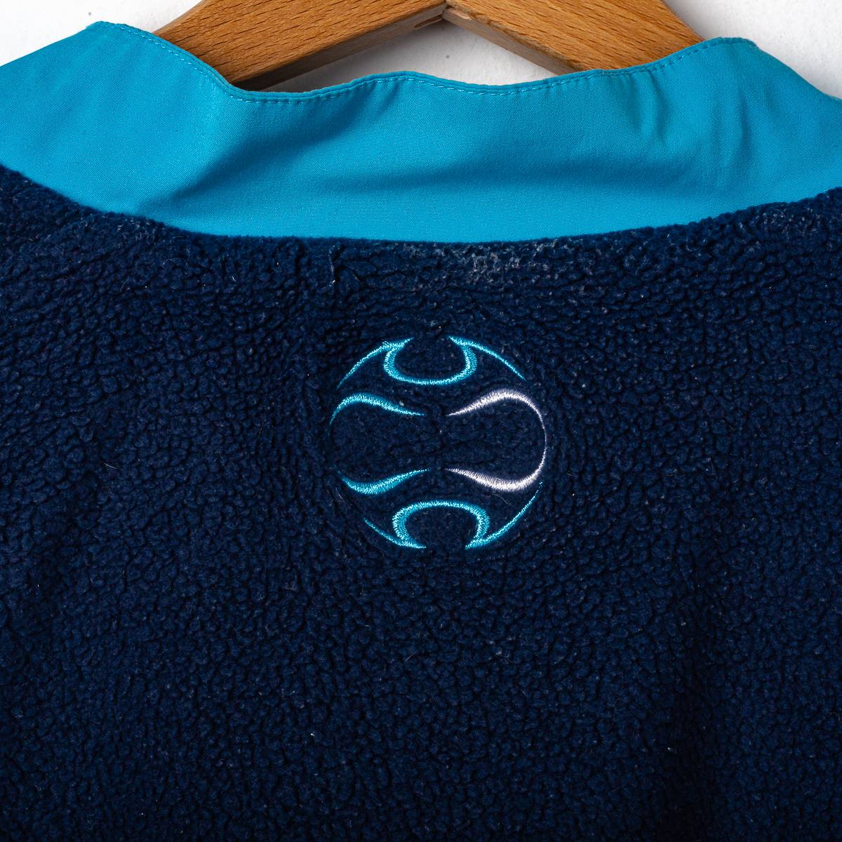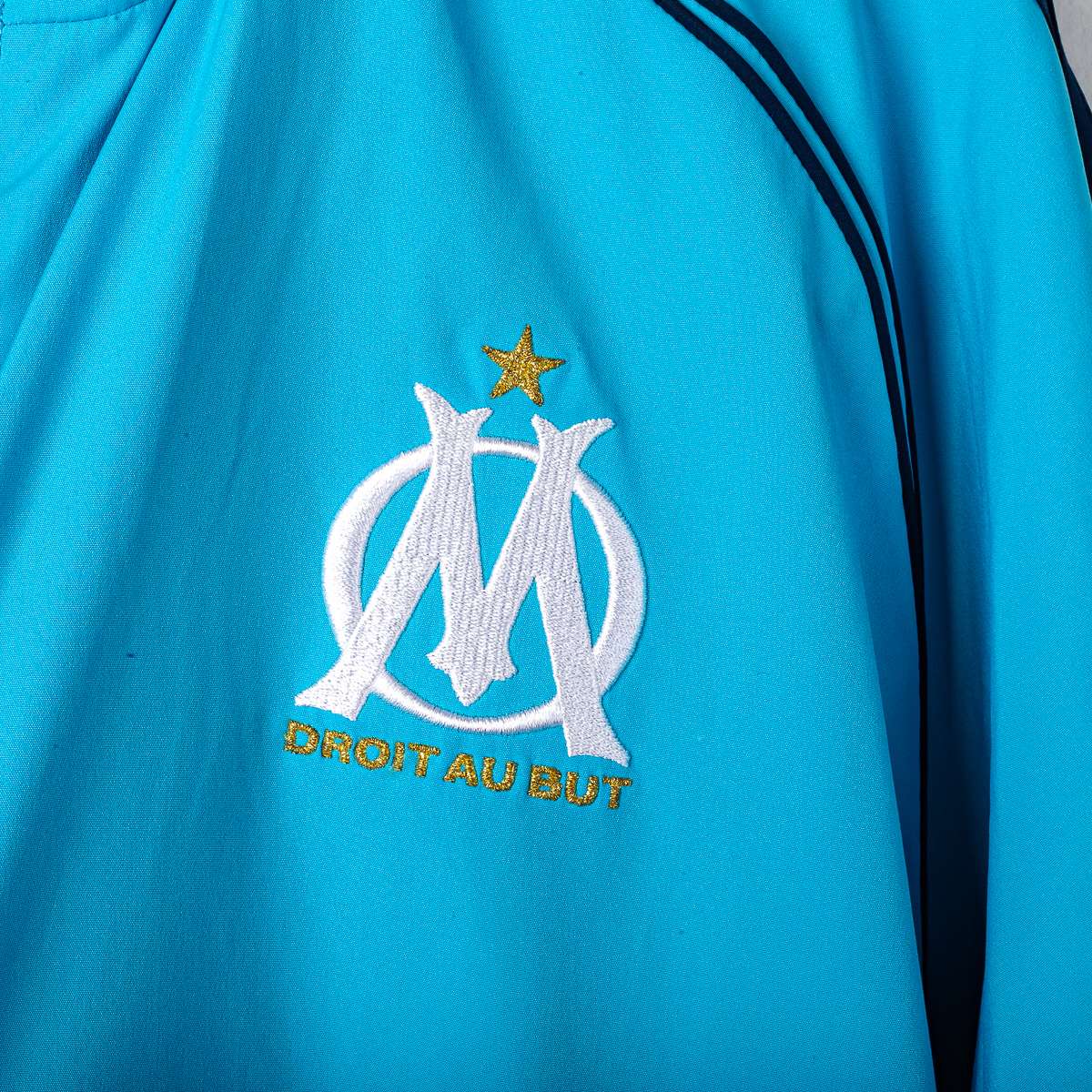 Giacca reversibile dell’Olympique Marsiglia stagione 2004/2005, prodotta da Adidas per la linea training. Il capo presenta una costruzione doppia. Sul petto compaiono il logo Adidas ricamato e lo stemma dell’OM con stella dorata e motto “Droit Au But”. Sul retro è presente il simbolo grafico circolare utilizzato in quegli anni dalla squadra francese. La mezza zip frontale, il colletto rialzato e la regolazione sul fondo completano un modello pratico e funzionale. Taglia XXL riportata internamente. Capo originale Adidas, rappresentativo dell’estetica OM dei primi anni 2000 e particolarmente interessante per collezionisti e appassionati di materiale training.
