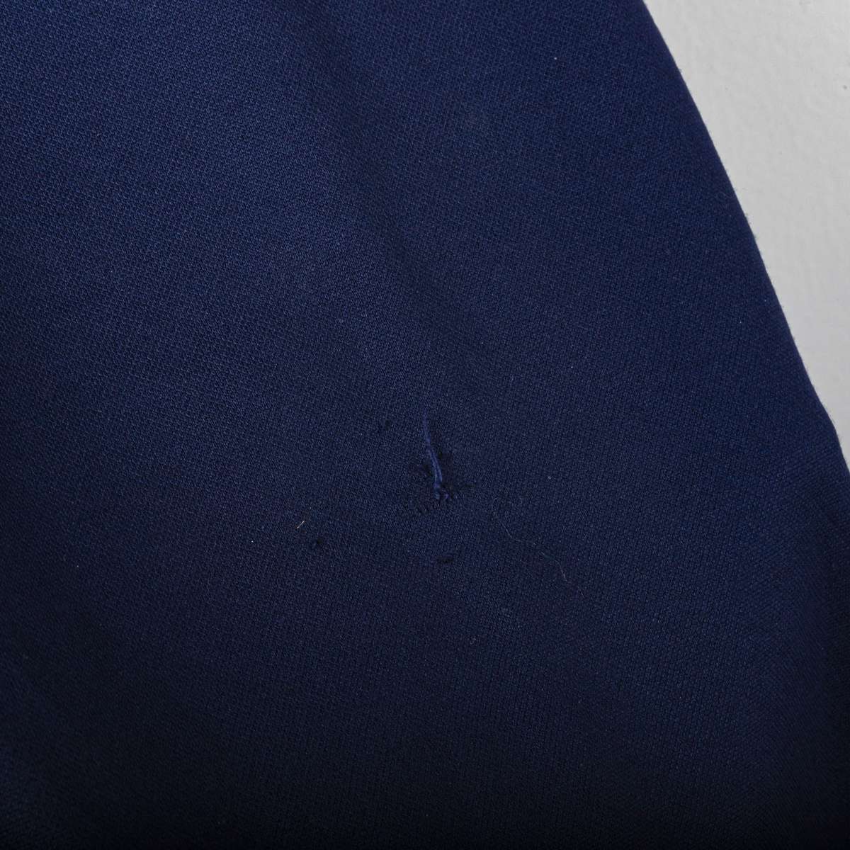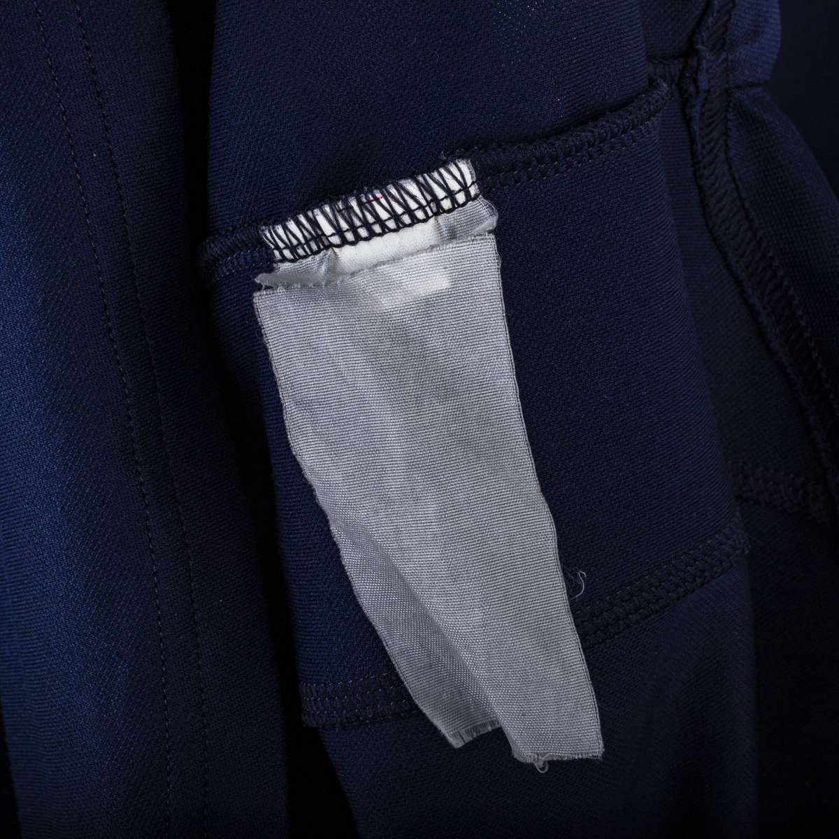 Sul petto sono applicati lo stemma FIGC con tre stelle ricamate – a rappresentare i Mondiali vinti fino a quel momento (1934, 1938, 1982) – e il logo Puma ricamato in colore oro. Sul retro è presente la scritta “ITALIA” stampata ad arco, elemento grafico tipico dei capi di allenamento della nazionale in quel periodo.