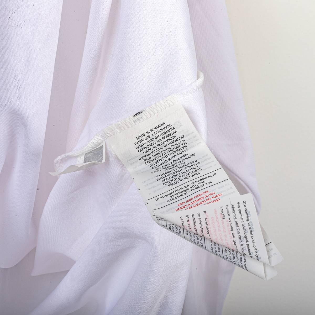 Maglia home dell’ACF Fiorentina stagione 2010/2011, prodotta da Lotto. Modello di colore bianco con inserti viola sulle maniche e dettagli a contrasto, colletto a polo con apertura a V e profili viola. Sul fronte sono applicati il logo Lotto, lo sponsor Save the Children in stampa e lo stemma ACF Fiorentina cucito lato cuore. Patch ufficiale Serie A TIM applicata sulla manica. Sul retro personalizzazione ufficiale Felipe 16 con nome e numerazione stampati in viola, visibilmente usurati con segni di cracking e abrasioni, coerenti con l’utilizzo. Scritta ACF Fiorentina applicata sul retro del colletto. Taglia da etichetta XL.