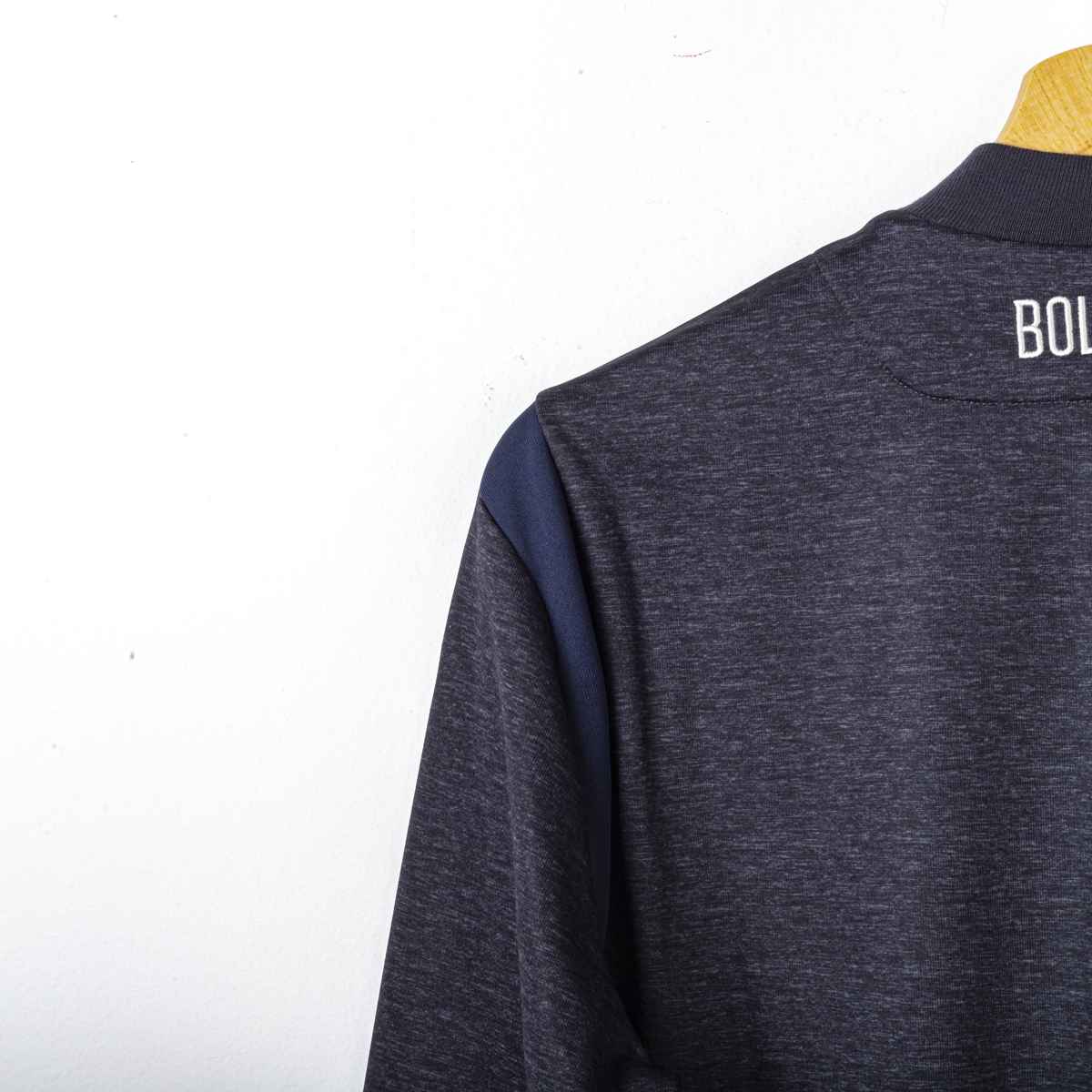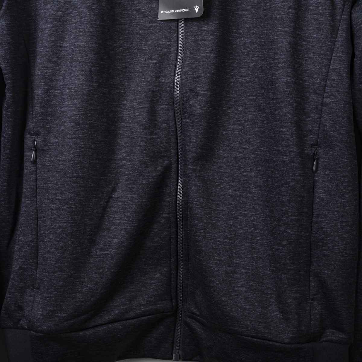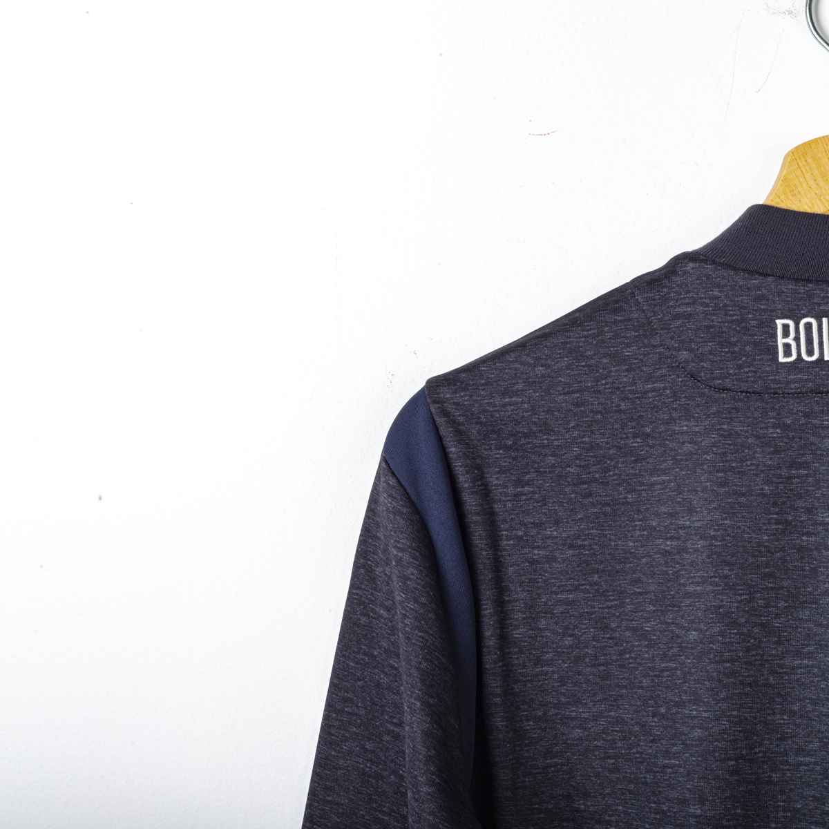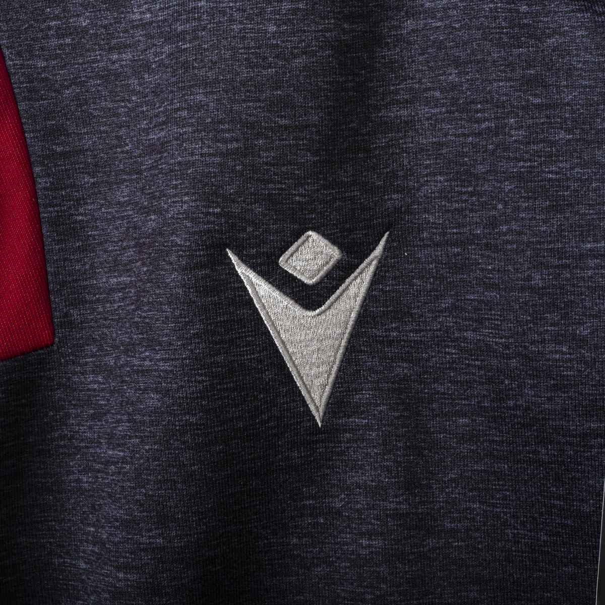 Sponsor Tecnico Macron ricamato. Logo del Bologna ricamato lato cuore. La Giacca presenta il cartellino del produttore. Prodotto nuovo. Sul retro del collo è presente la scritta Bologna Fc 1909 ricamata in bianco.