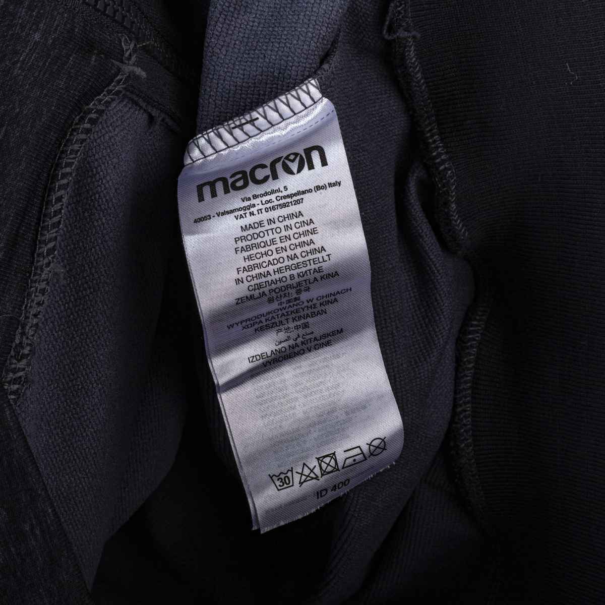 Etichetta interna Macron “166-171cm”, taglia S. Altezza 68cm e Larghezza torace 53cm