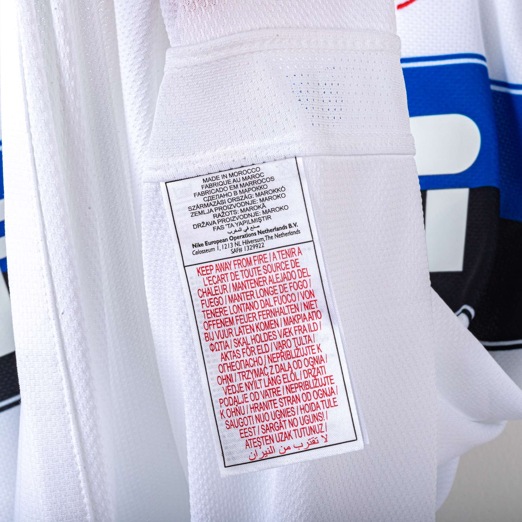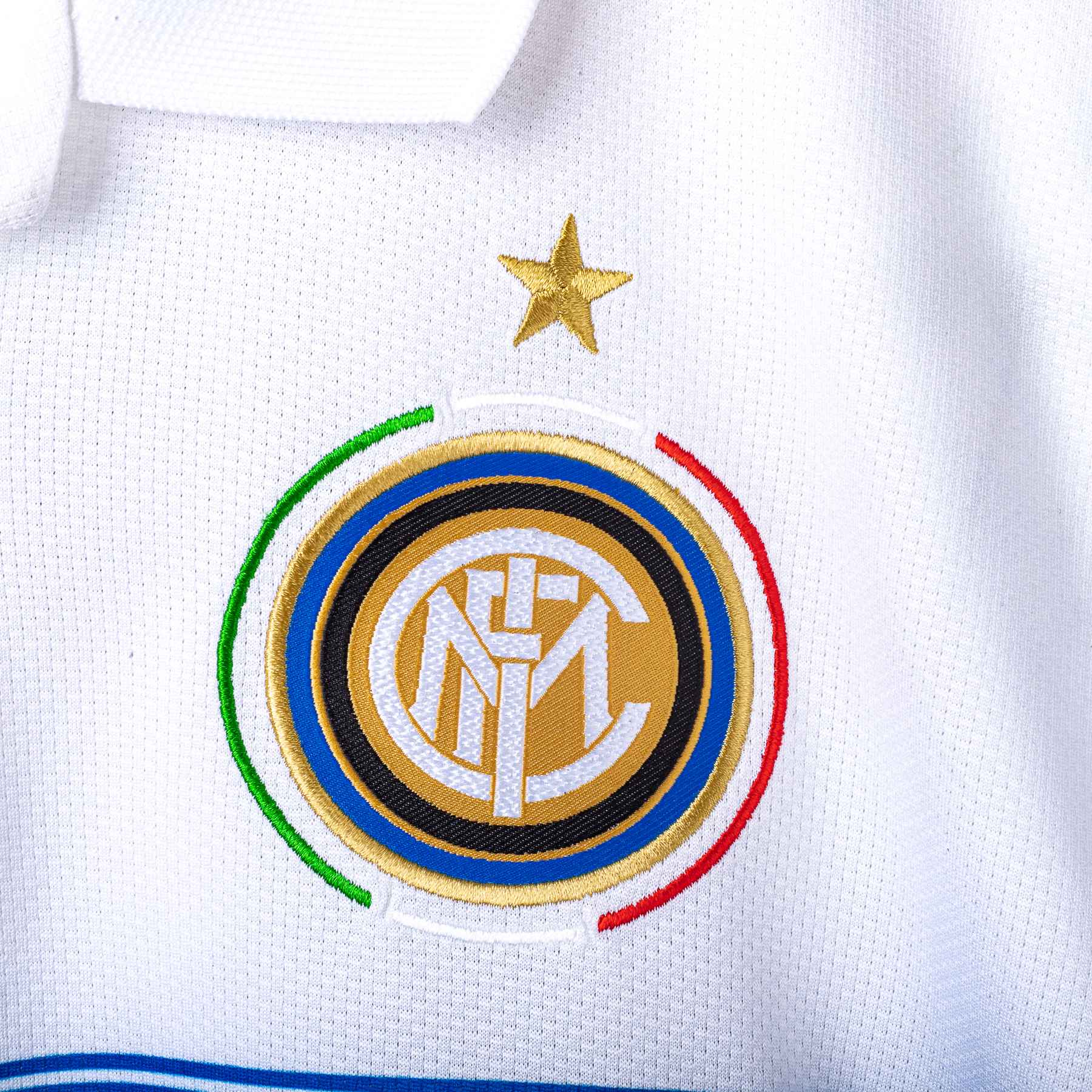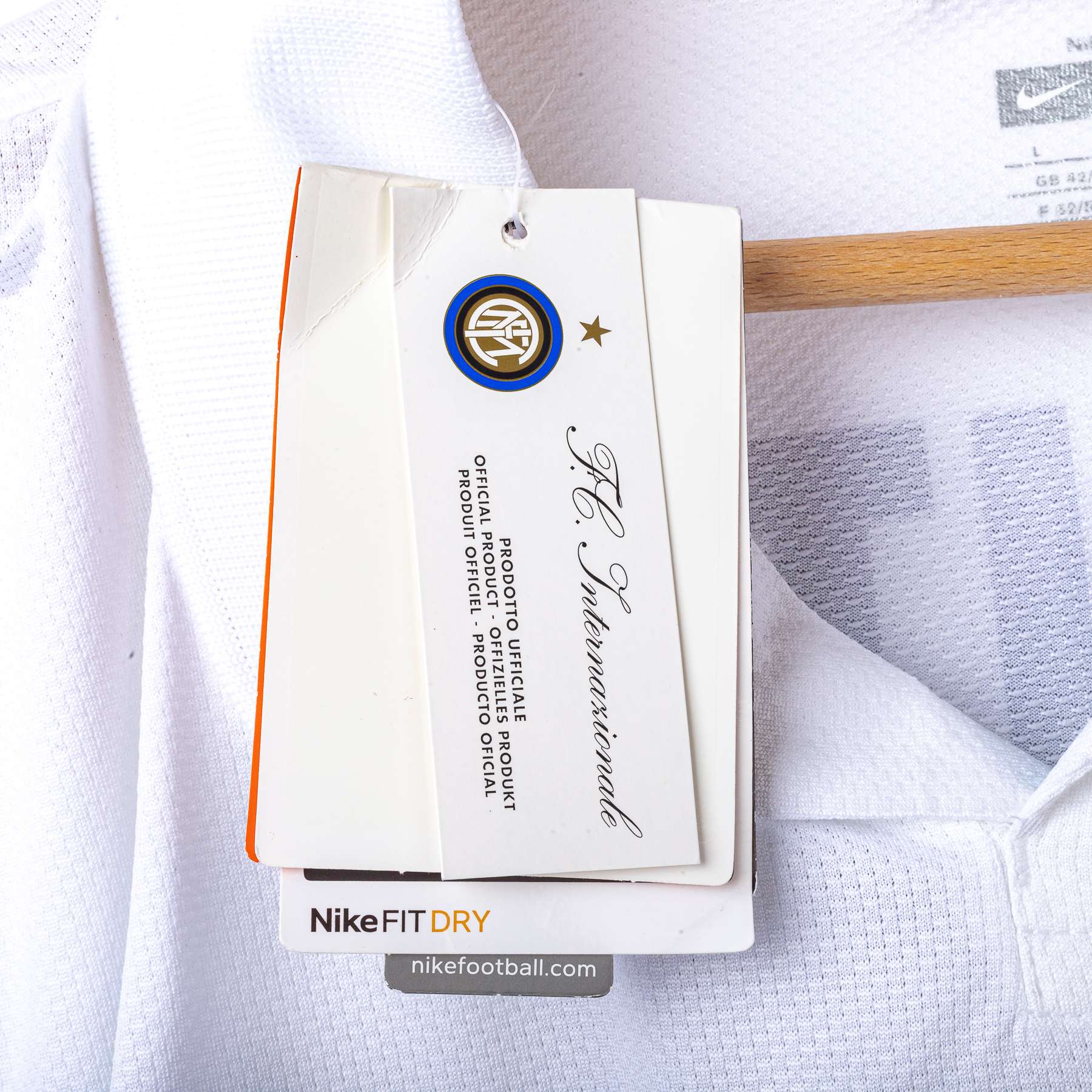 Maglia away dell’Inter stagione 2009/2010, realizzata da Nike per le gare di UEFA Champions League. Base bianca con iconica banda orizzontale neroazzurra sul petto e colletto stile polo, in perfetta linea con il design del Triplete. Tessuto tecnico NikeFIT Dry leggero e traspirante, con pannelli in mesh per facilitare la ventilazione in gara.