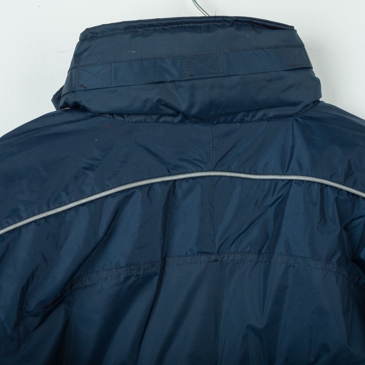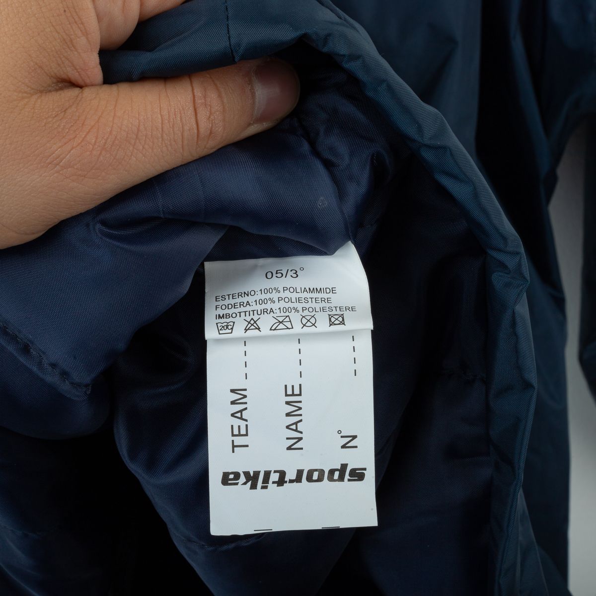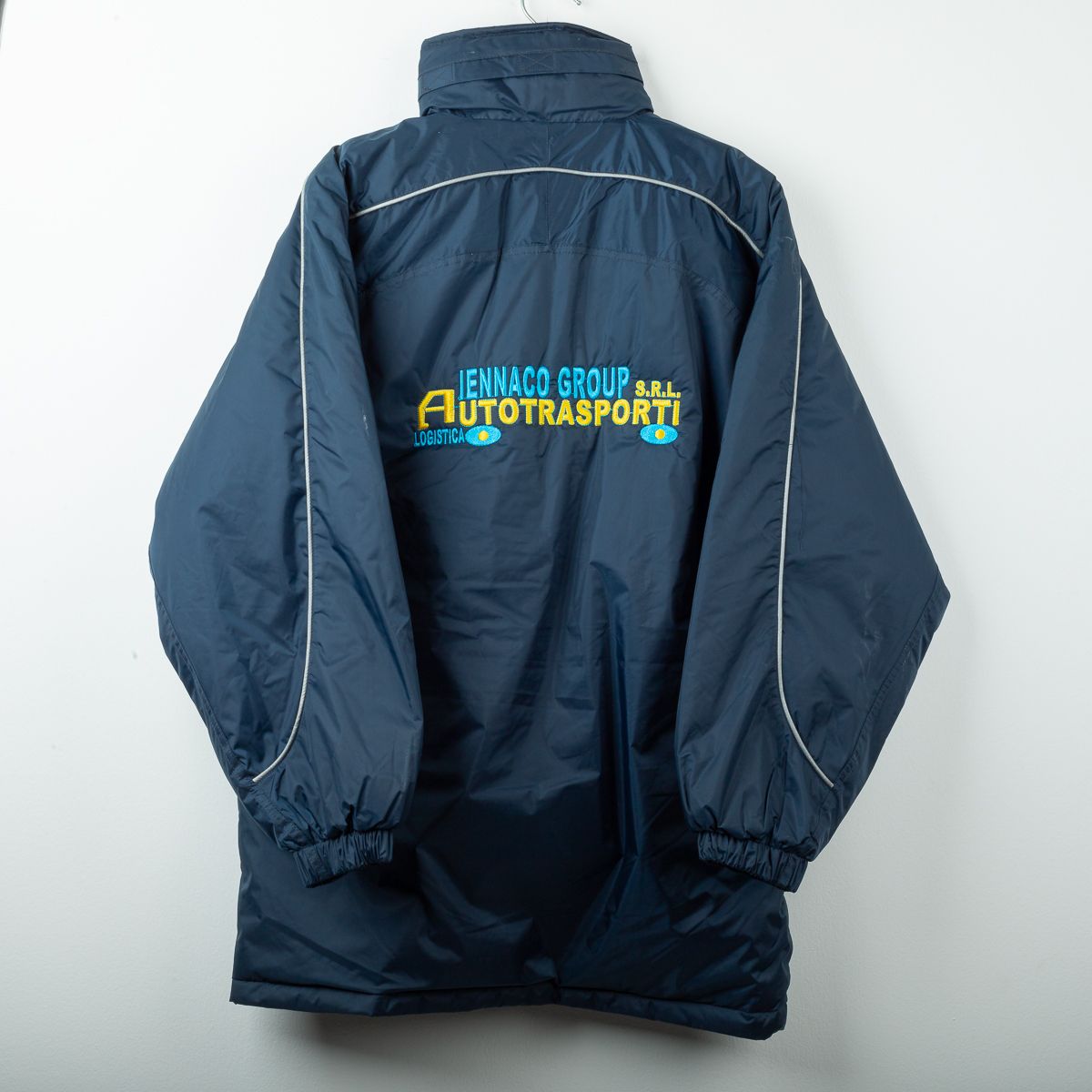 Giaccone ufficiale Fly Line utilizzato dalla Juve Stabia nella stagione 2013/2014. Realizzato in colore blu navy con piping grigio riflettente sulle maniche, presenta sul petto il logo Fly Line ricamato e lo stemma della Juve Stabia applicato tramite patch cucita.