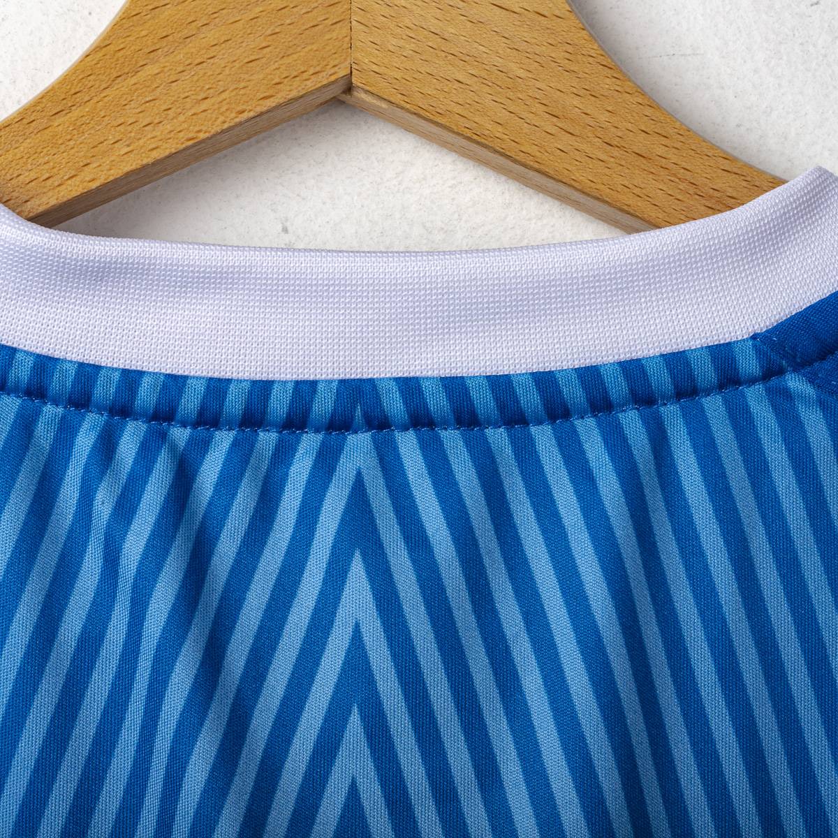 Maglia home della Dinamo Minsk realizzata da Saller per la stagione 2020/2021. Design in tonalità di blu con grafica geometrica ondulata su tutta la parte frontale, che crea un effetto visivo dinamico e moderno.