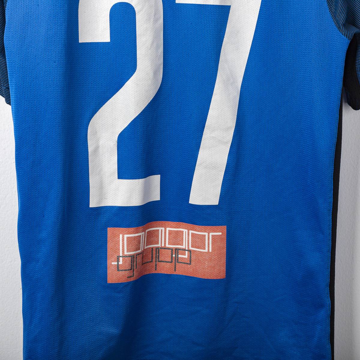 Sul retro troviamo la numerazione 27 in bianco con sponsor aggiuntivi nella parte superiore e inferiore.