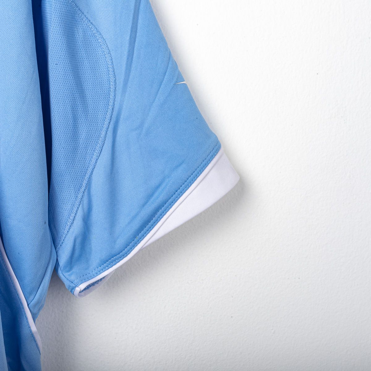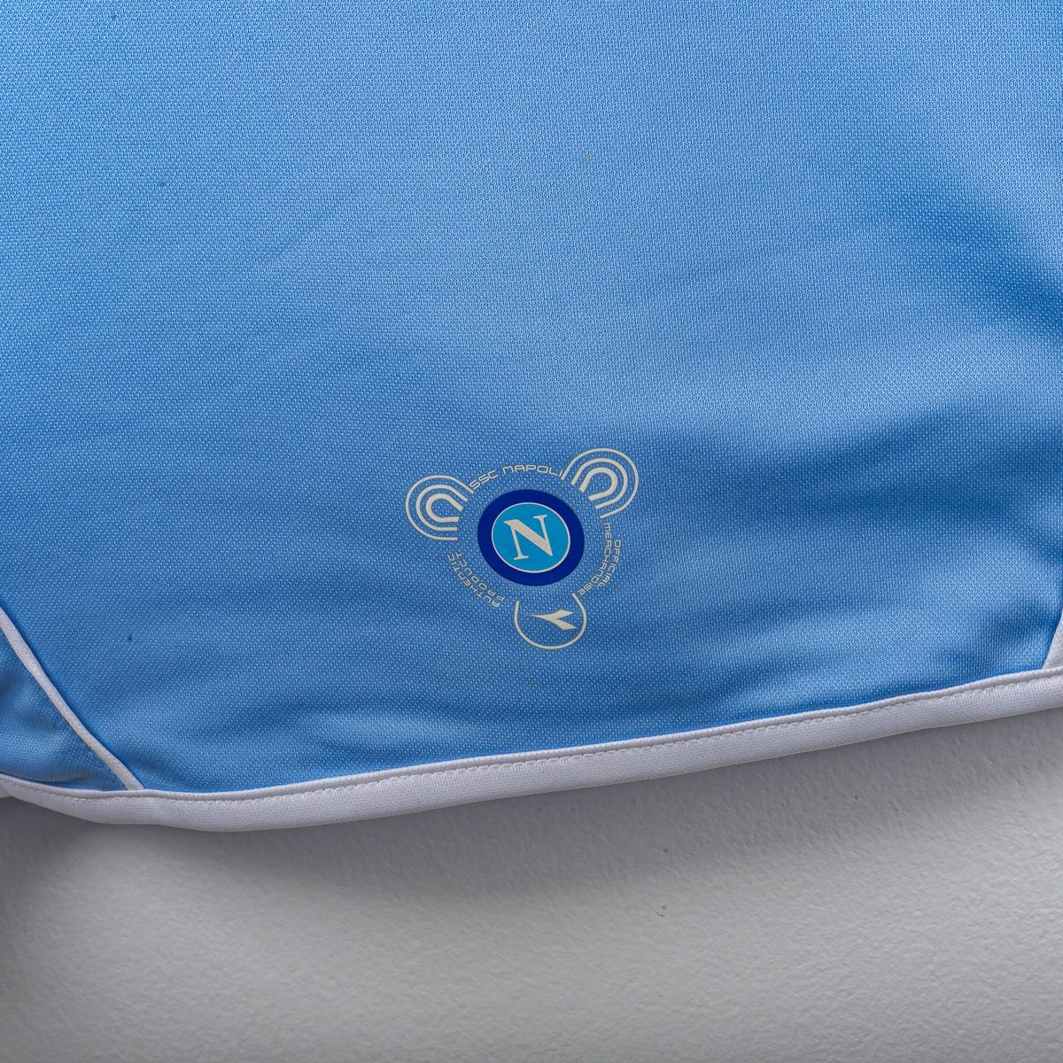 Maglia home del Napoli stagione 2007/2008 realizzata da Diadora. Colore azzurro con inserti bianchi lungo i profili e piping su spalle e fianchi, colletto a V con bordatura bianca e maniche con finitura bianca. Logo Diadora in stampa lato petto e loghi Diadora sulle maniche in stampa. Stemma Napoli in stampa sul petto. Sponsor Lete in stampa sul fronte. Personalizzazione Lavezzi numero 7 sul retro in stile ufficiale della stagione con scritta SSC Napoli sotto il colletto in stampa. Etichette interne presenti con codici prodotto e composizione 100% poliestere. Taglia XXL.