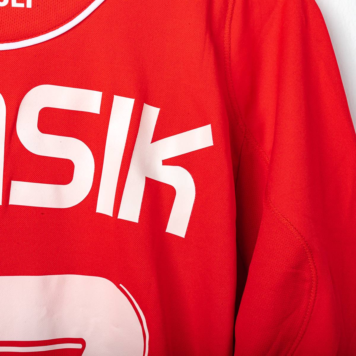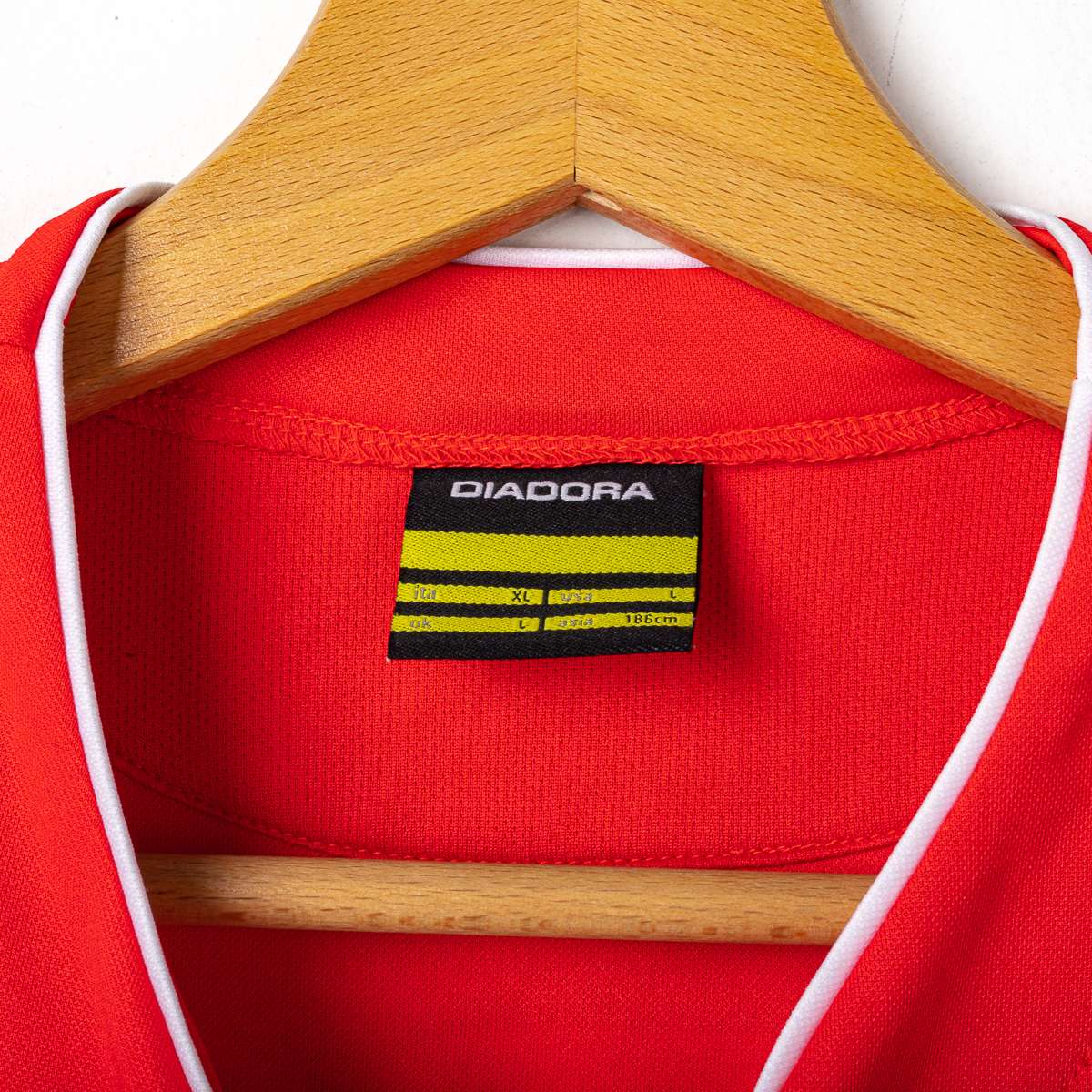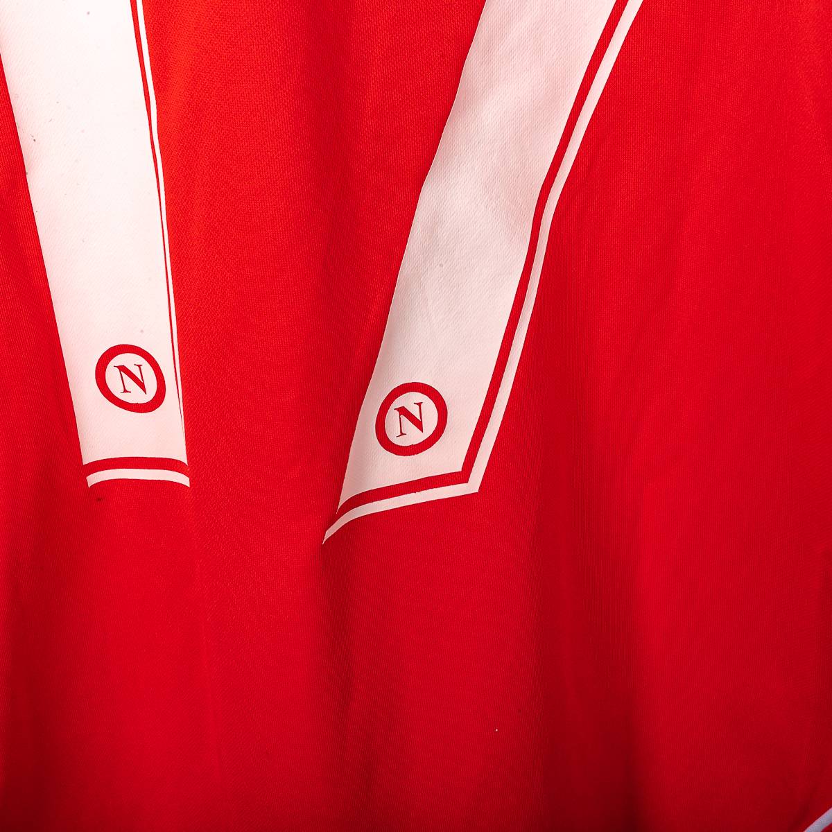 Maglia third della SSC Napoli stagione 2007/2008, prodotta da Diadora e personalizzata con nome e numero Hamsik 17. Modello a manica corta in poliestere tecnico, colore rosso con inserti blu navy e piping bianco, stemma Napoli ricamato sul petto e sponsor “Lete” stampato. Taglia da etichetta XL, maglia originale Diadora dell’epoca, ideale per collezionisti partenopei e appassionati di Hamsik.