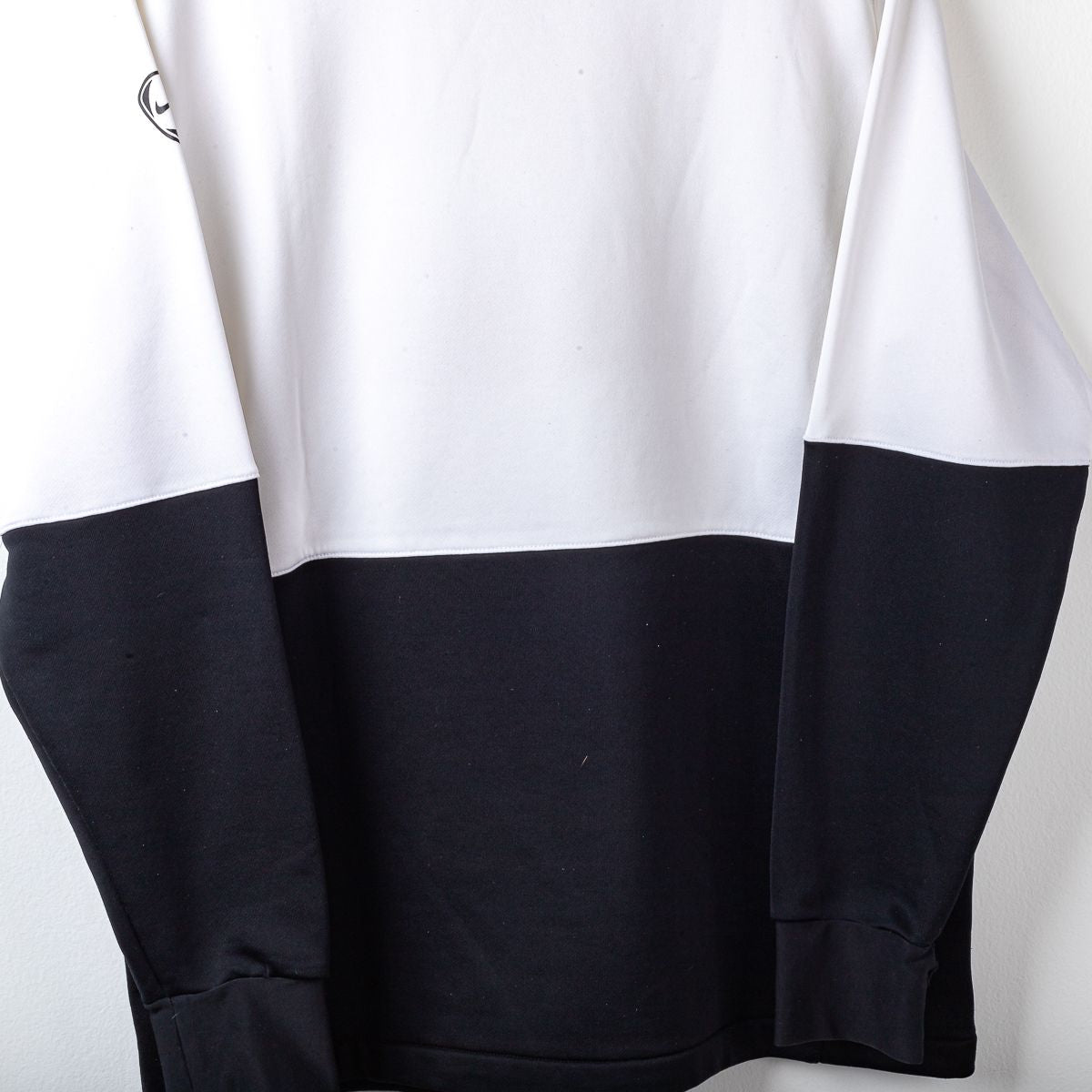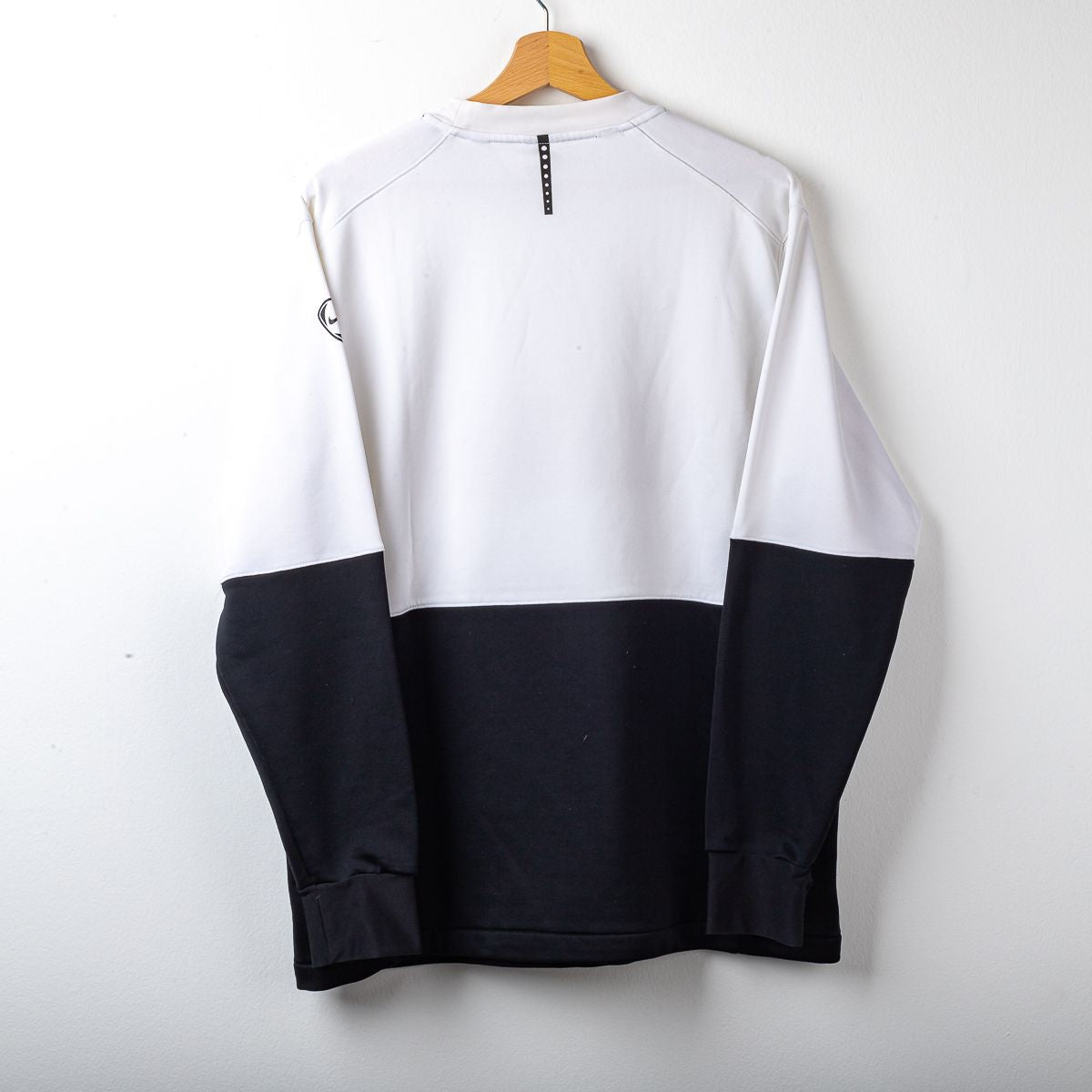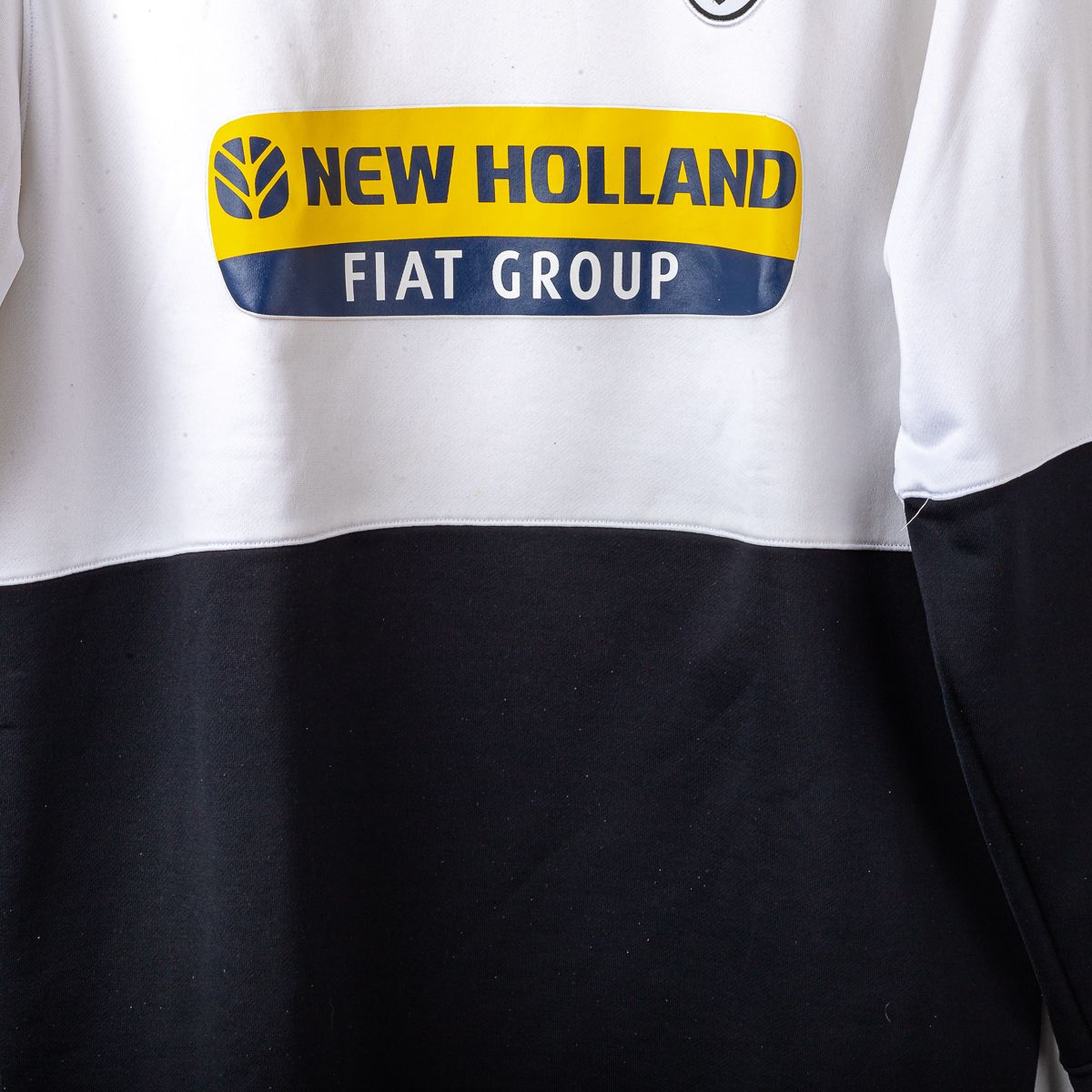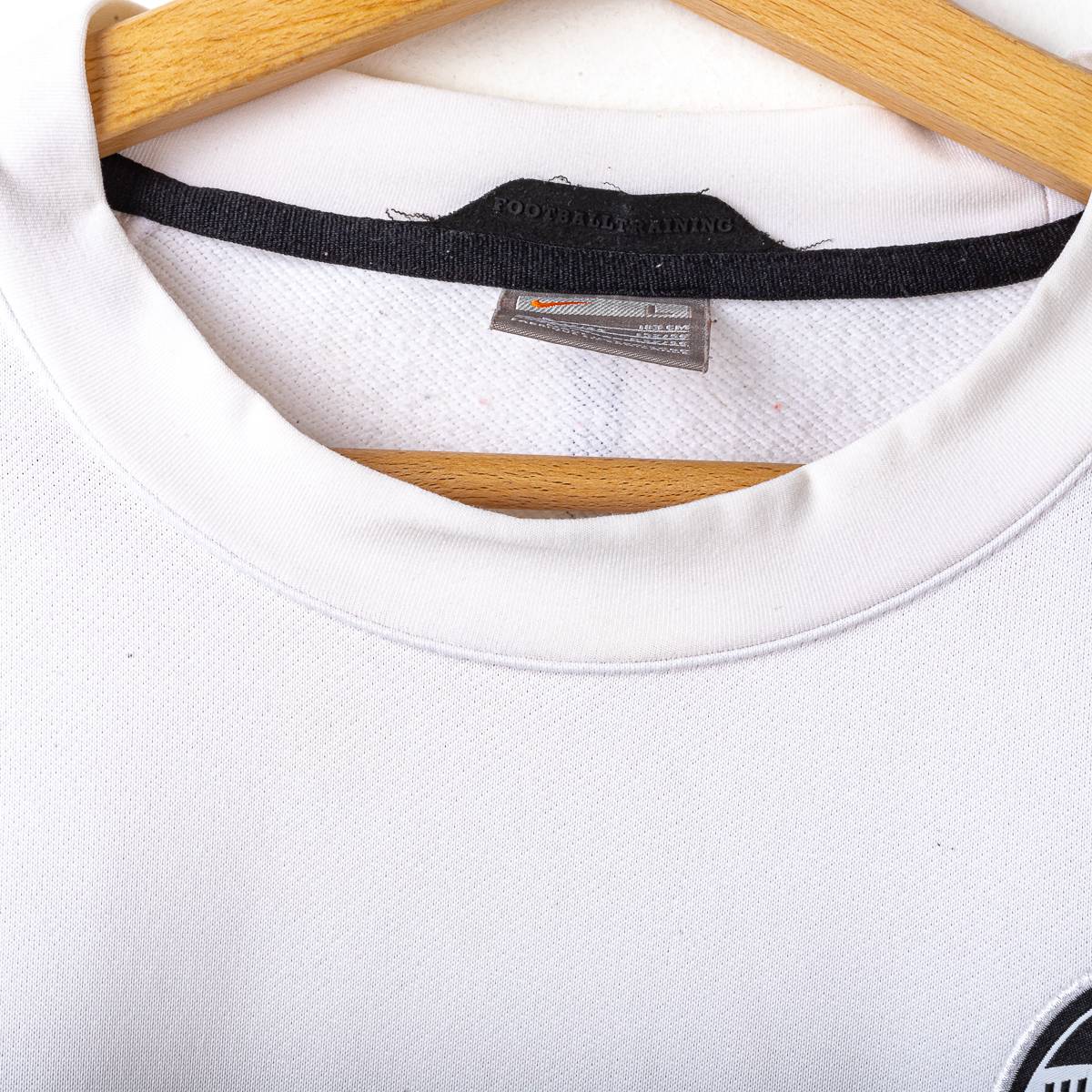 Maglia training/manica lunga della Juventus FC stagione 2008/2009, prodotta da Nike. Modello bicolore con parte superiore bianca e sezione inferiore nera, maniche lunghe coordinate e girocollo. Sul fronte sono applicati lo swoosh Nike stampato, lo stemma Juventus ricamato lato cuore e lo sponsor New Holland – Fiat Group termoapplicato. Sulla manica è presente patch Nike stampata. Sul retro design pulito con dettaglio tecnico centrale sotto il colletto. Tessuto tecnico Nike in poliestere, ideale per allenamento e tempo libero. Taglia da etichetta L.