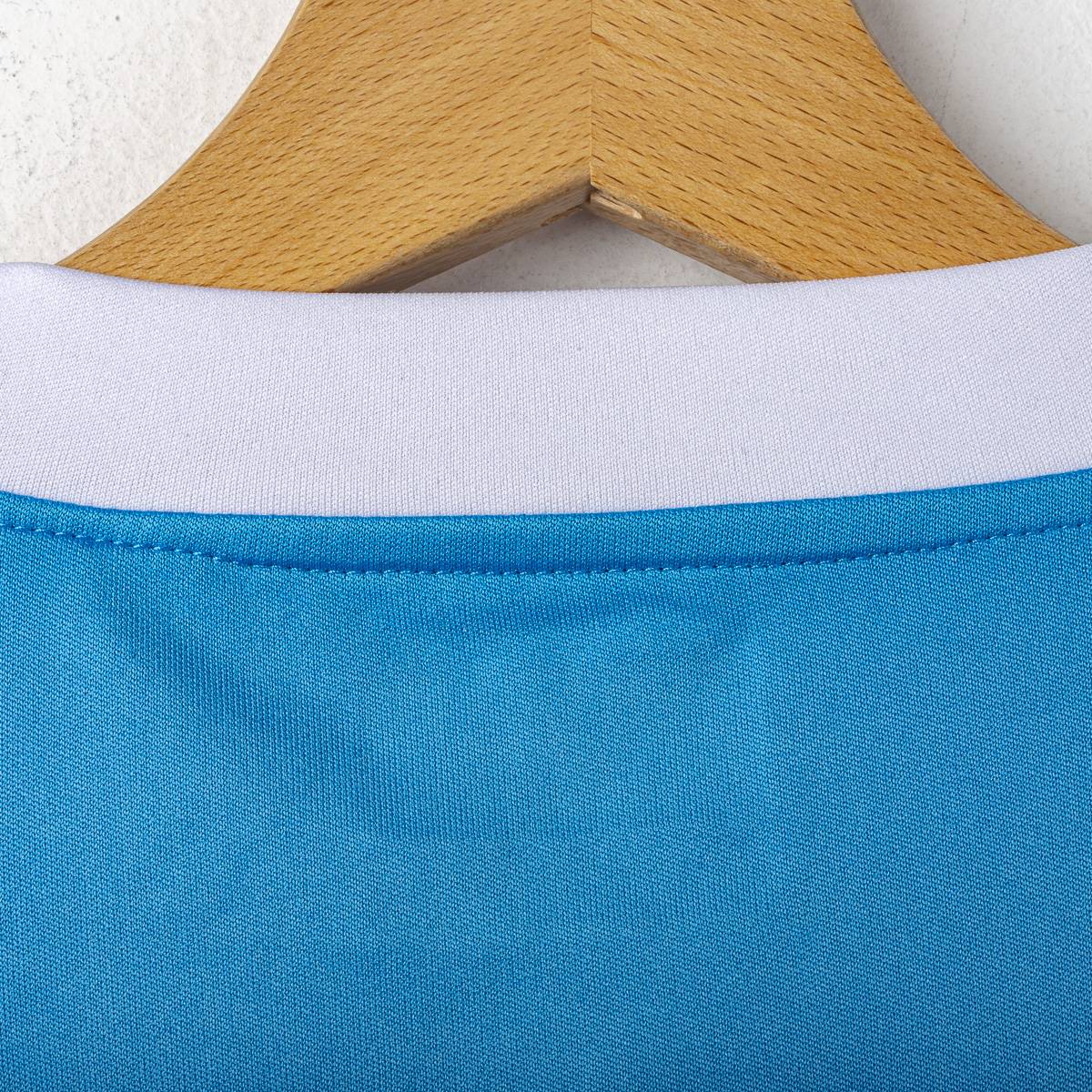 Il design presenta il classico azzurro Napoli con colletto bianco a V e dettagli minimal, accompagnato dal logo Kappa e dallo sponsor Lete sul petto, con ulteriore sponsor Garofalo. Sulla manica è presente la patch Serie A TIM.