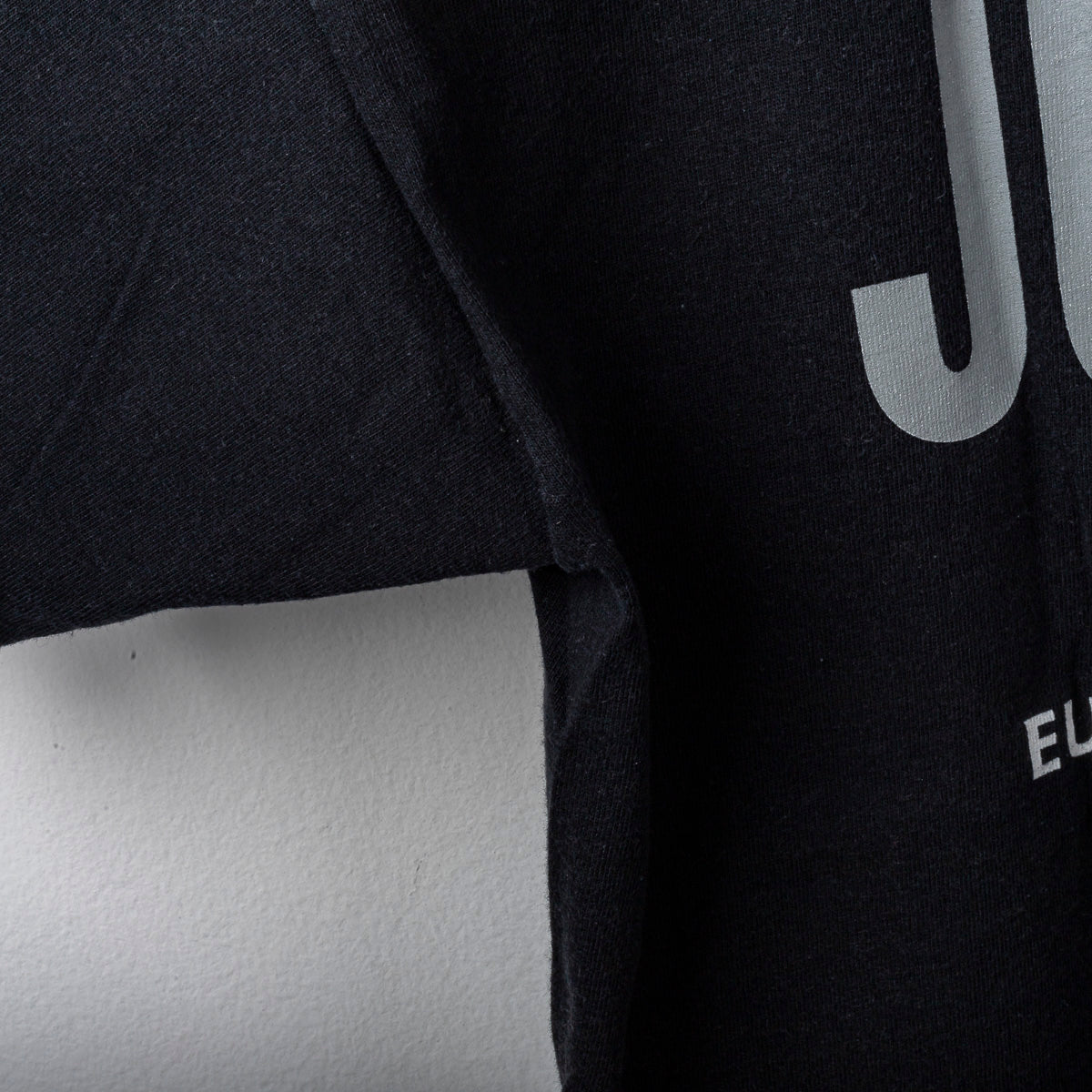 Il capo presenta base nera con grafica frontale “JUVENTUS European / South American Cup” arricchita dal logo Kappa e da un design tipico degli anni ’90. Sul retro sono stampati i dettagli dell’evento: data (26 novembre), orario e location della finale, con la scritta “JUVENTUS FINAL”.