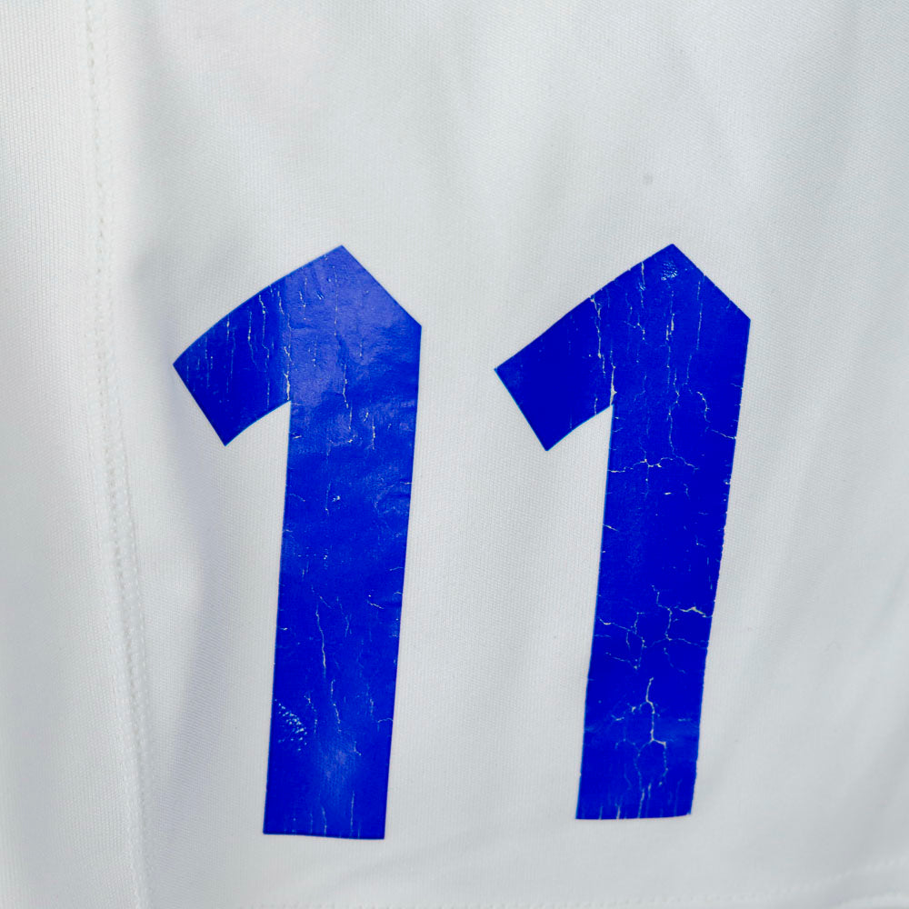 Pantaloncini home della Nazionale Italiana inizio anni 2000, nel ciclo che accompagna gli Azzurri tra Euro 2000 e il Mondiale 2002. Base bianca pulita, logo Omini applicato lateralmente e numerazione 11 in blu.