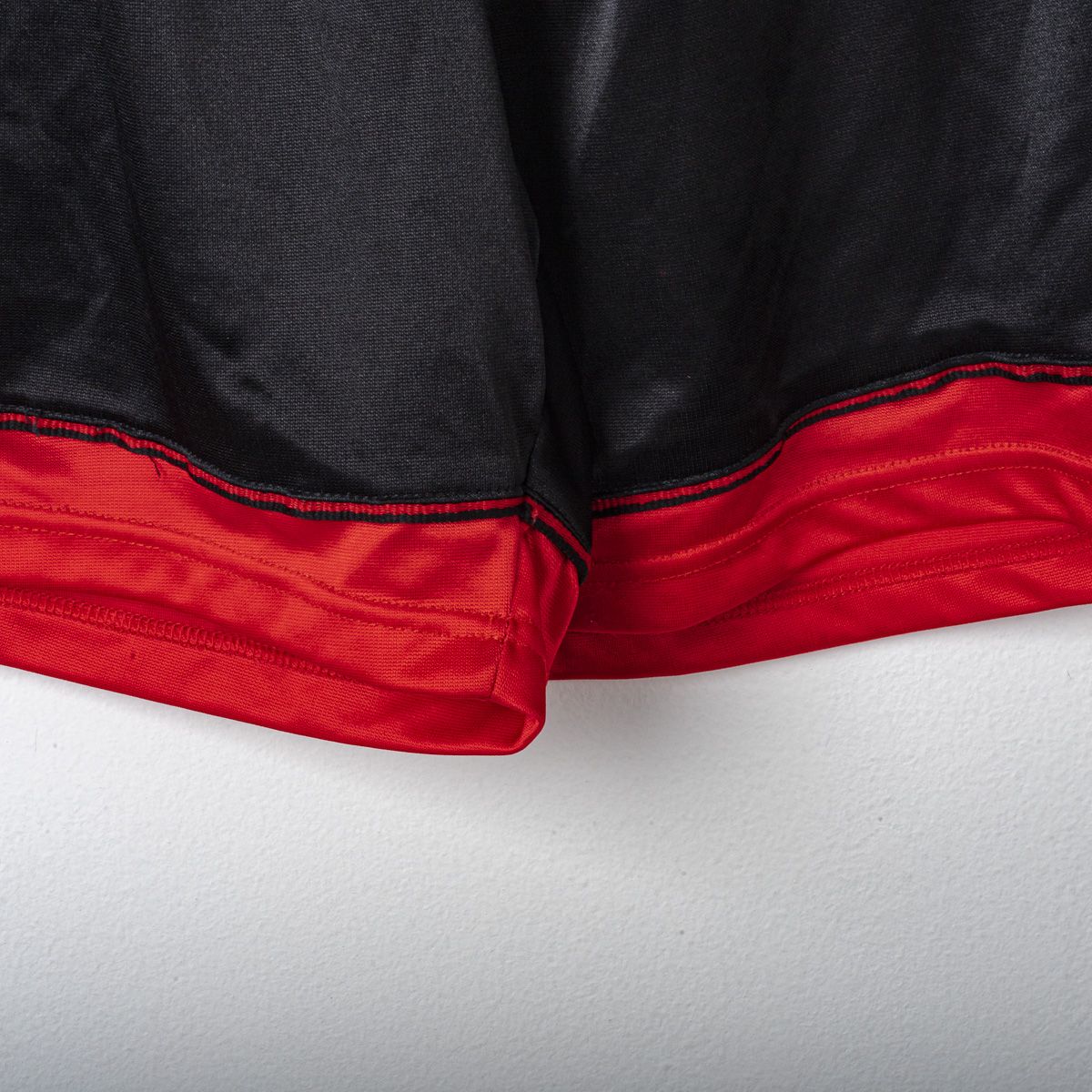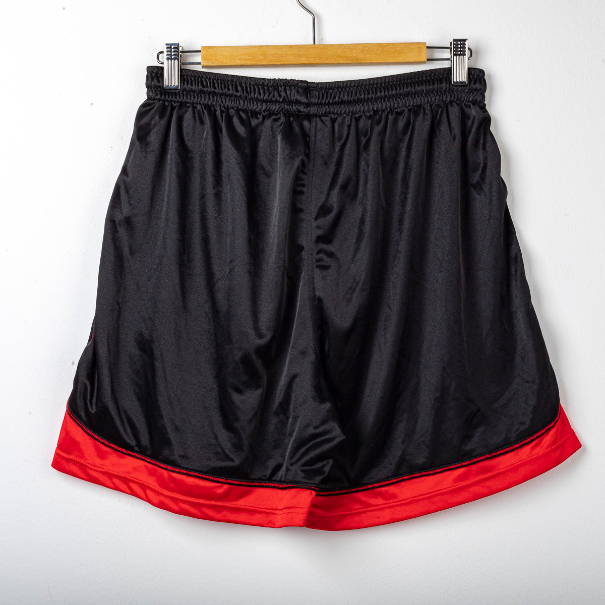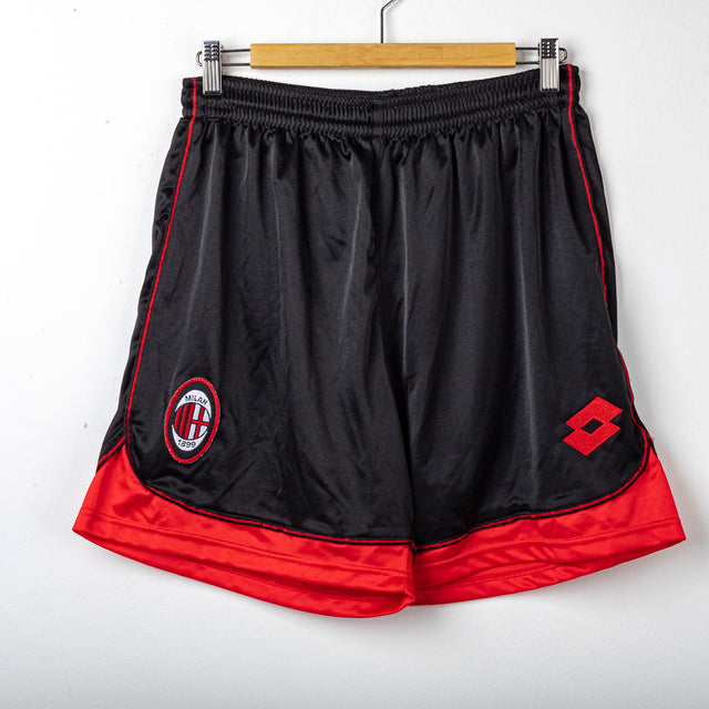 Pantaloncini away dell’AC Milan stagione 1996/1997 realizzati da Lotto. Il modello presenta la classica base nera con inserti rossi sul fondo gamba e lungo i profili laterali.