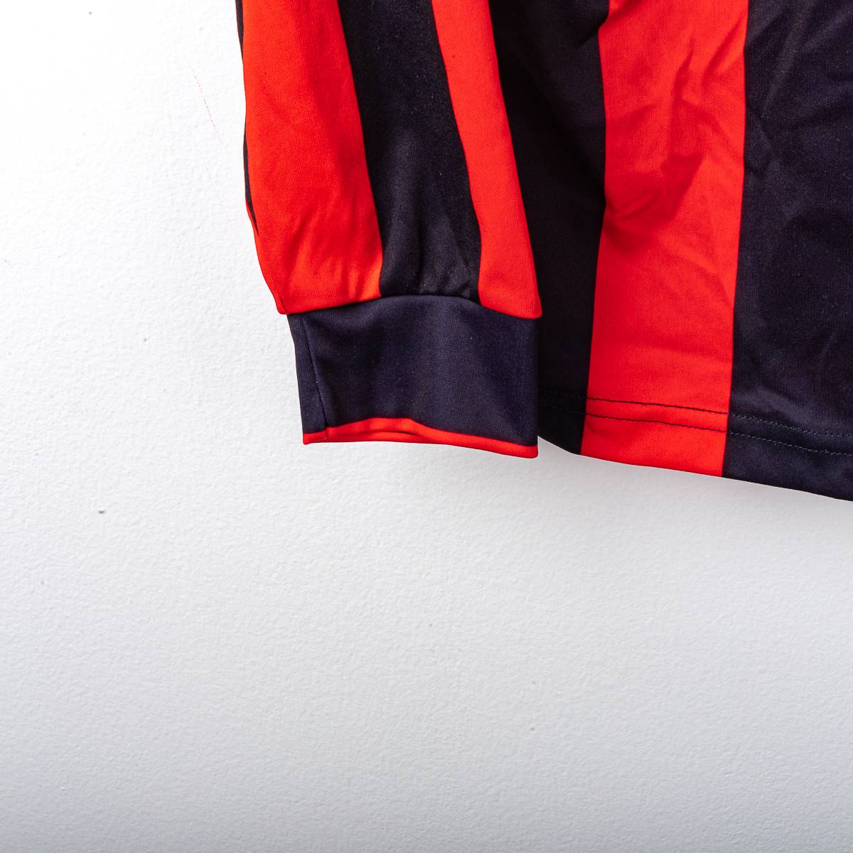 Maglia home bambino dell’AC Milan stagione 1994/1995, prodotta da Lotto. Iconico modello a righe verticali rossonere, con colletto a polo nero rifinito da profilo rosso e scollo a V. Sul fronte sono applicati il logo Lotto stampato, lo sponsor Opel centrale e la stella dorata sopra lo stemma, simbolo dei titoli conquistati dal club. Stemma AC Milan applicato lato cuore. Vestibilità bambino, realizzata in tessuto tecnico 100% poliestere. Taglia da etichetta XXXL 176 (bambino).