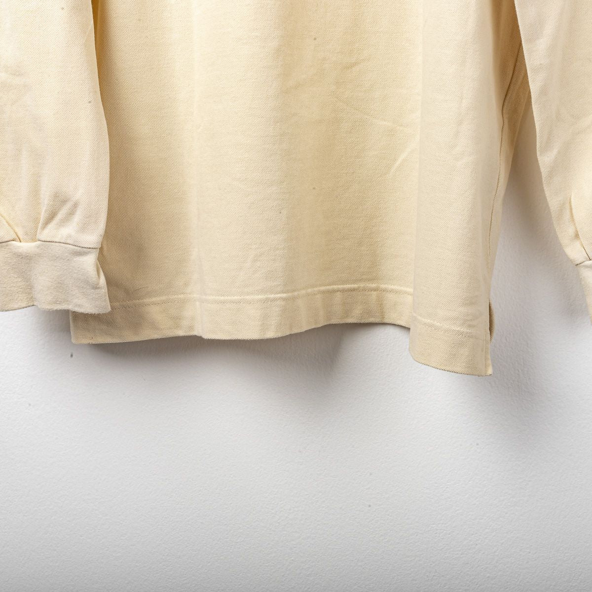 Modello a manica lunga in cotone di colore beige, con colletto classico e chiusura a due bottoni. Sul fronte sono presenti logo Macron e sponsor AreaBanca in stampa, mentre lo stemma Bologna FC è applicato lato cuore in versione cucita.