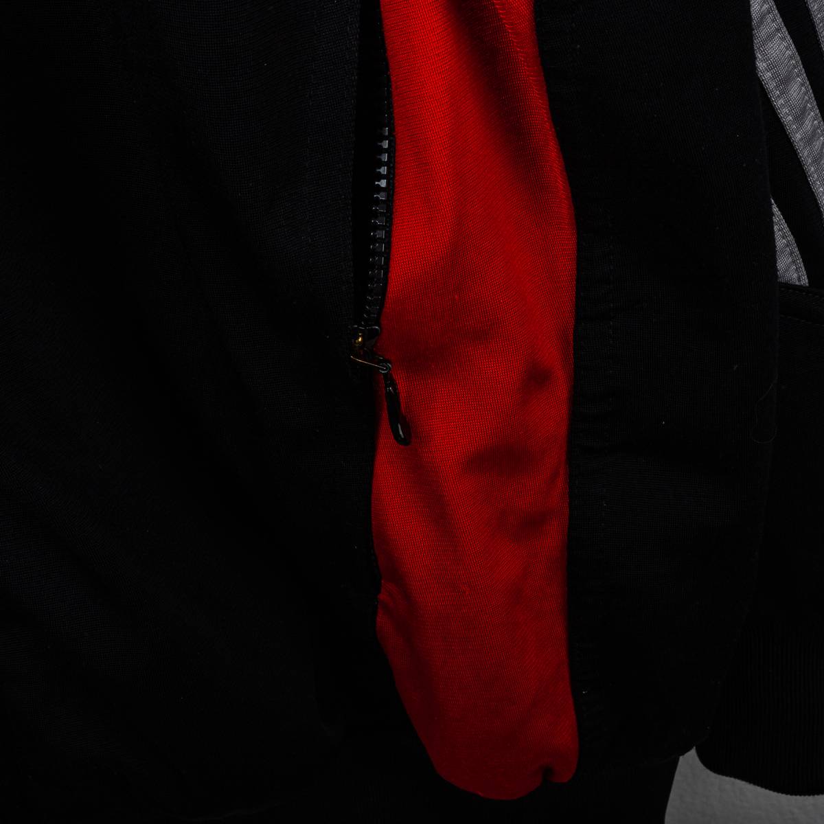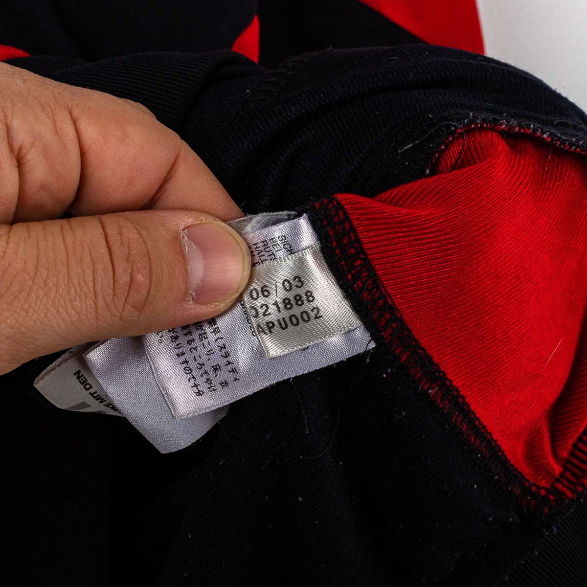 Official AC Milan jacket from the 2003/2004 season, produced by Adidas. Full-zip model in black with contrasting red panels and iconic grey Adidas three stripes along the sleeves. The Adidas logo and the AC Milan crest with a golden star are both stitched on the chest. High neck with “Milan AC” embroidery on the back, a distinctive detail of Adidas products from the early 2000s. The large screen-printed Opel sponsor logo stands out on the back, with the Adidas logo underneath in the same style, both with natural surface wear consistent with the age of the garment. Elasticated cuffs and hem for a stable and comfortable fit. Size XL (height indicated 186 cm on the internal label).