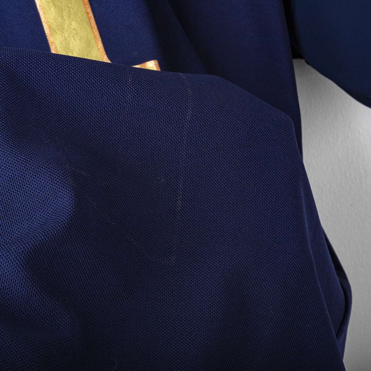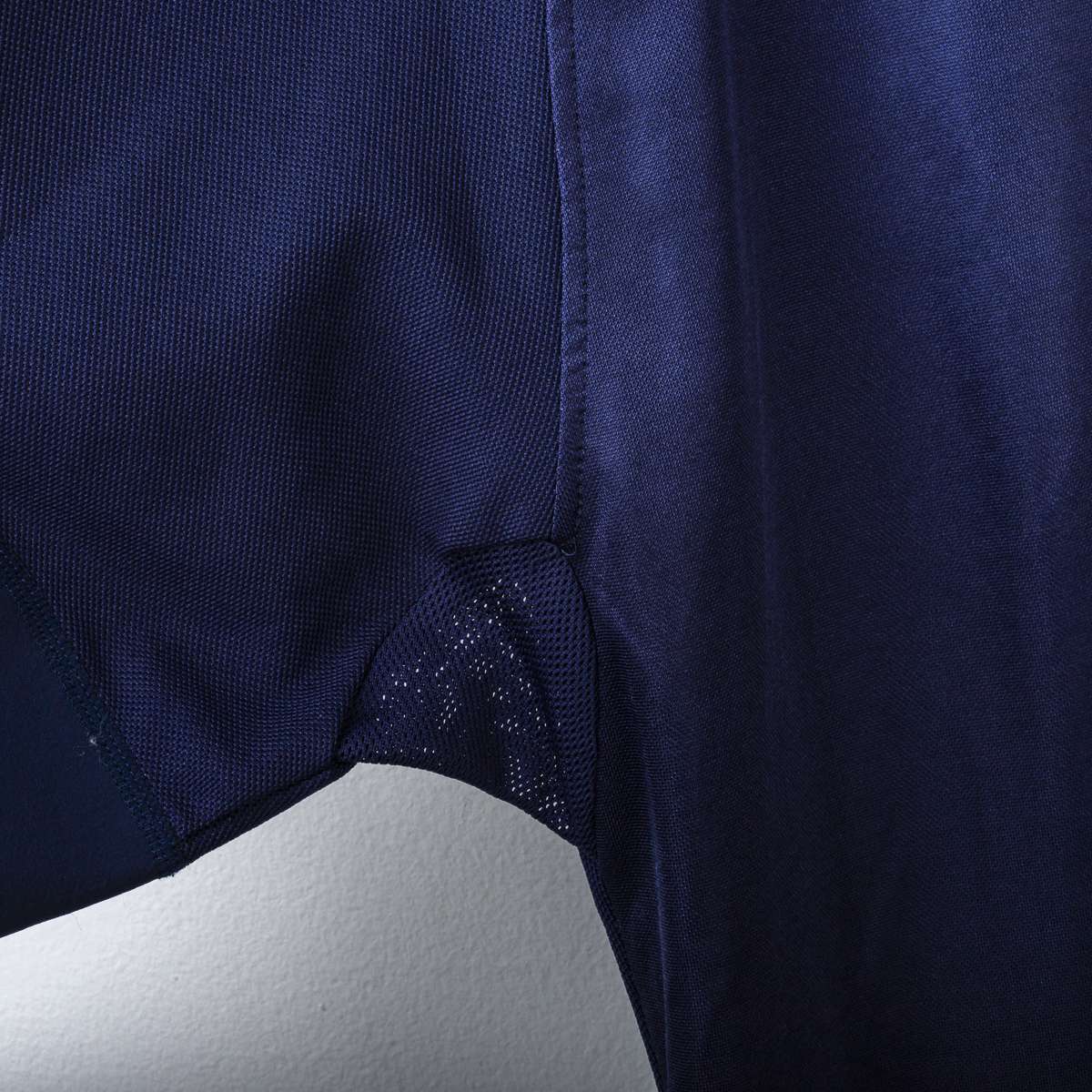 Versione home in colore blu navy con inserti tecnici su spalle e maniche. Stemma FIGC applicato al centro del petto con tre stelle sopra lo scudetto tricolore. Logo Puma ricamato sotto il crest e sulle maniche.