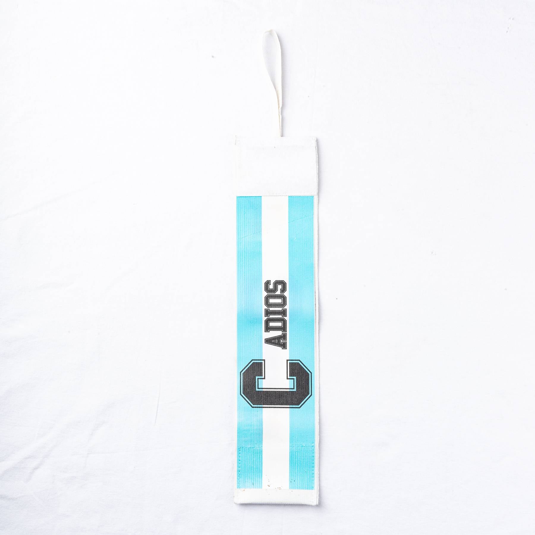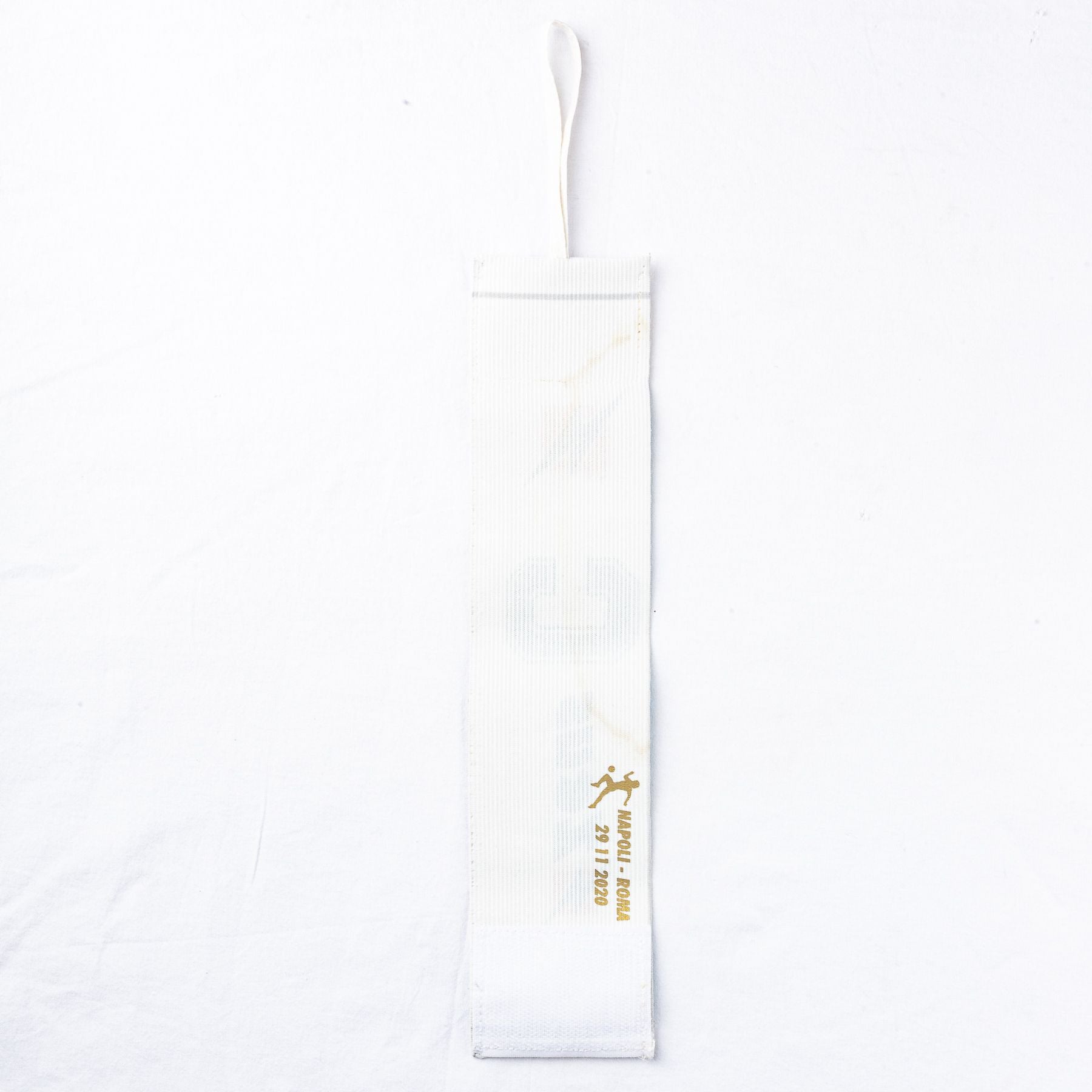 Modello di Fascia da capitano speciale preparato per Lorenzo Insigne nel match Napoli-Roma del 29 novembre 2020, incontro dedicato alla memoria di Diego Armando Maradona, scomparso pochi giorni prima. Design commemorativo ispirato alla maglia della Nazionale argentina, con bande celesti e bianche e grande lettera “C” nera seguita dalla scritta “AD10S”, tributo al numero 10 per eccellenza.