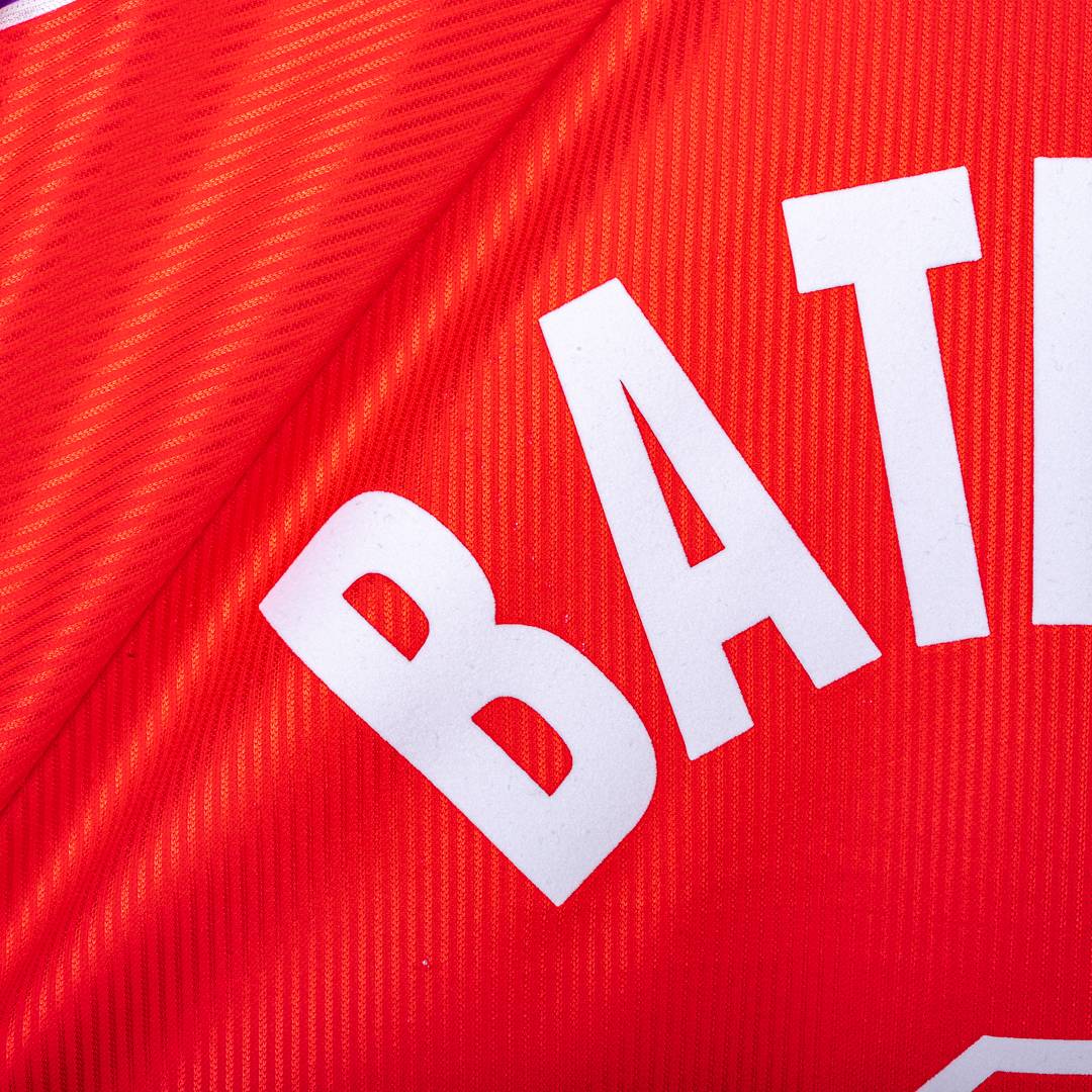 Sul retro è presente la personalizzazione Batistuta 9 in bianco in stile ufficiale della stagione.