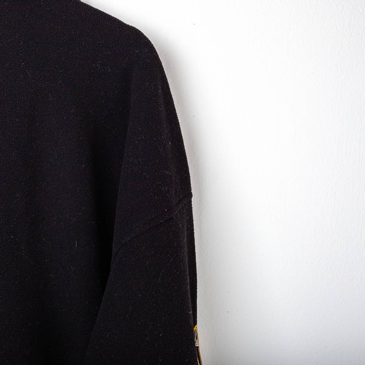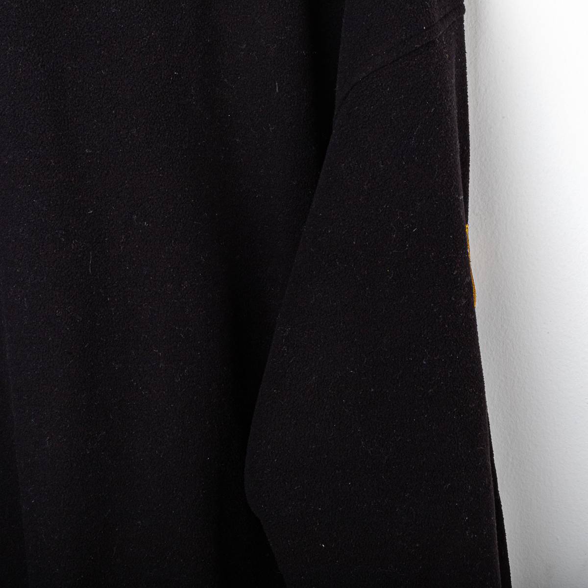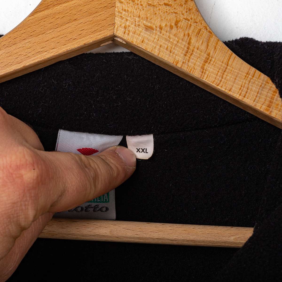 Official Juventus FC jacket/sweatshirt from the 2000/2001 season, produced by Lotto. Made from warm fleece fabric, solid black, with a high neck and a half-zip front closure with contrasting grey trim. Lotto logo applied on the right side and “JUVENTUS FC” patch on the chest, with an additional Juventus badge on the sleeve. “Ciao Web” sponsor applied on the chest in an oval embroidered patch. “Calcio Italia Lotto” label inside; size XXL.