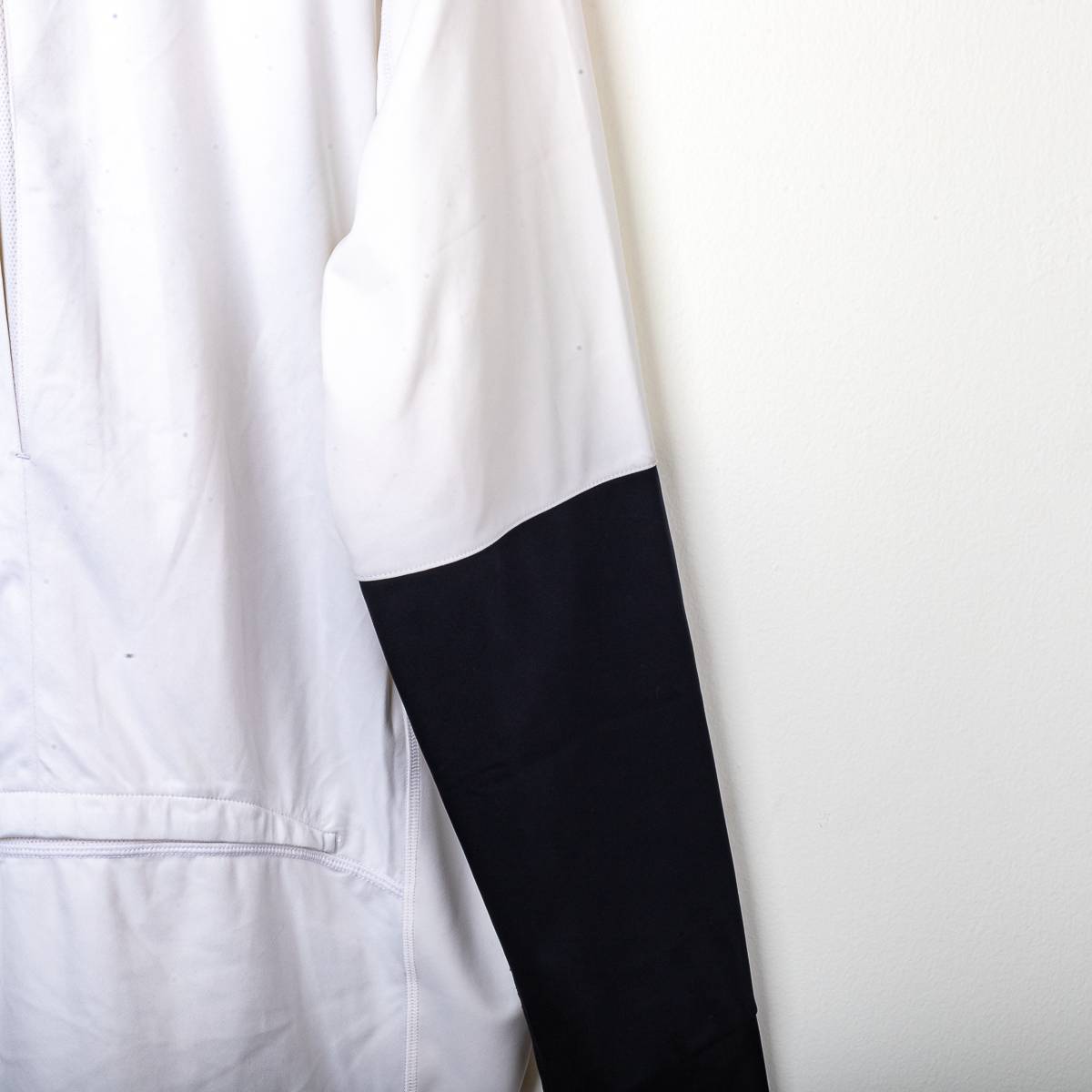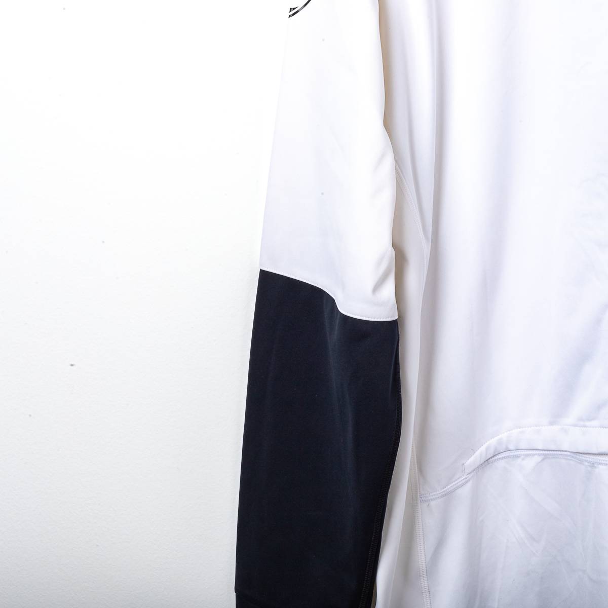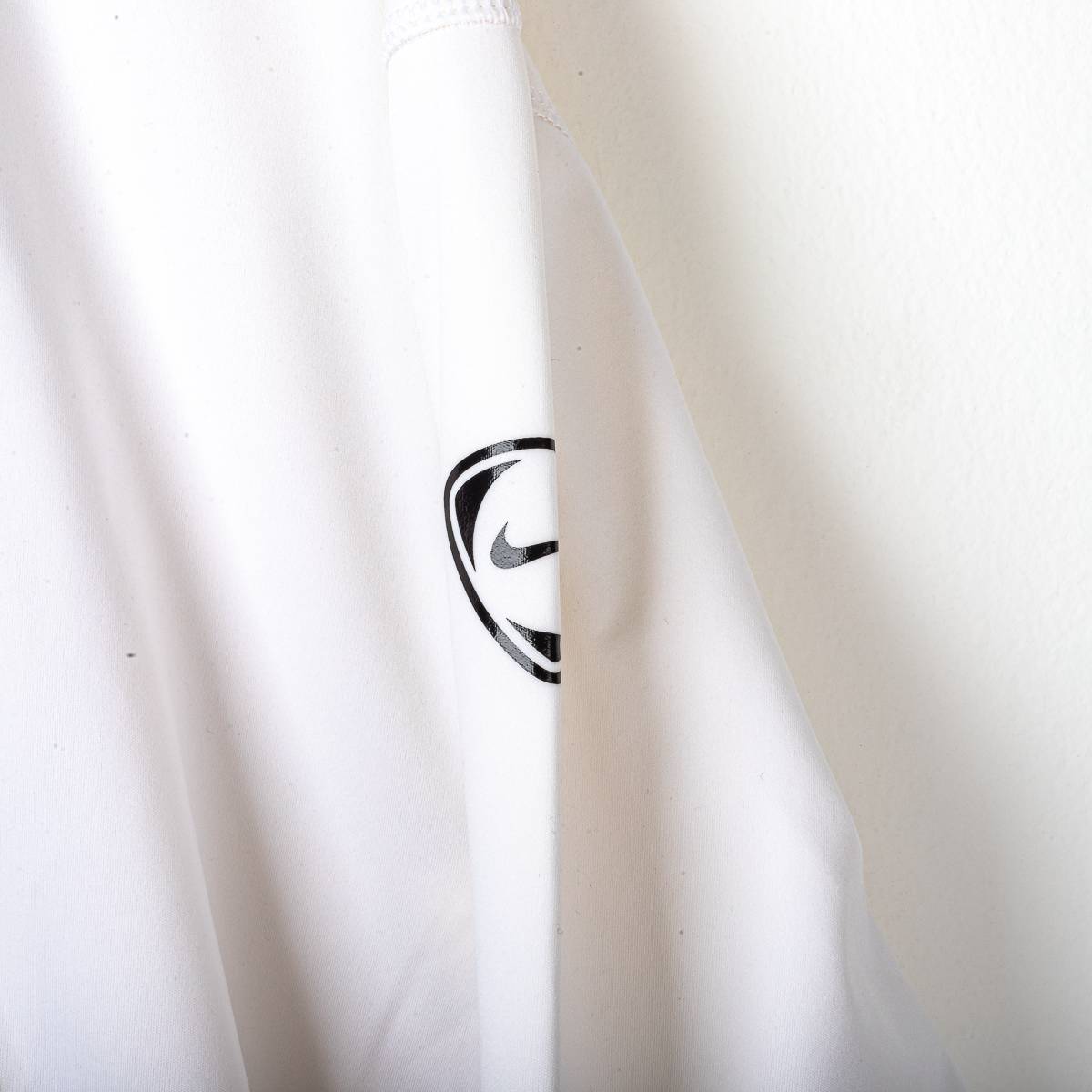 Official Juventus training jersey from the 2008/2009 season, made by Nike. Long-sleeved model in white Dri-FIT technical fabric, with contrasting black inserts on the sleeves for greater protection and grip. The Nike swoosh and the Juventus crest with an oval shield, sewn into a patch, are featured on the chest, while the New Holland Fiat Group sponsor is printed in yellow and blue at the center. Nike internal label with size XL.