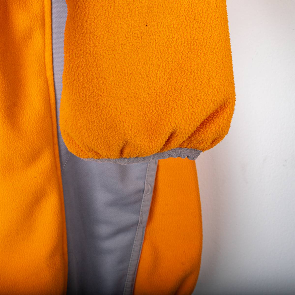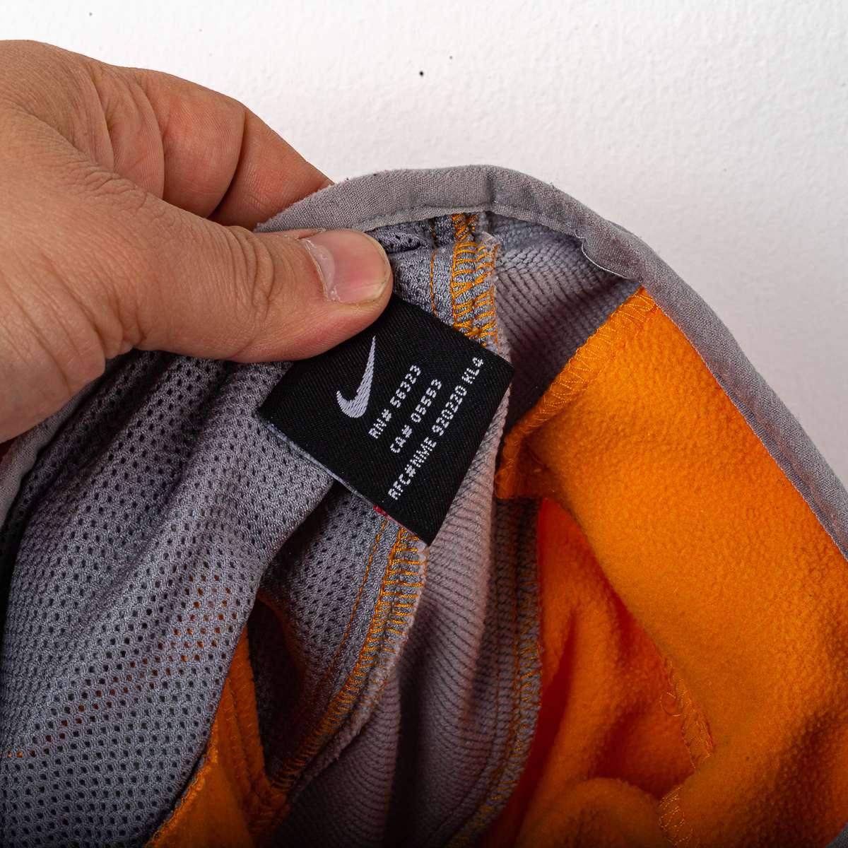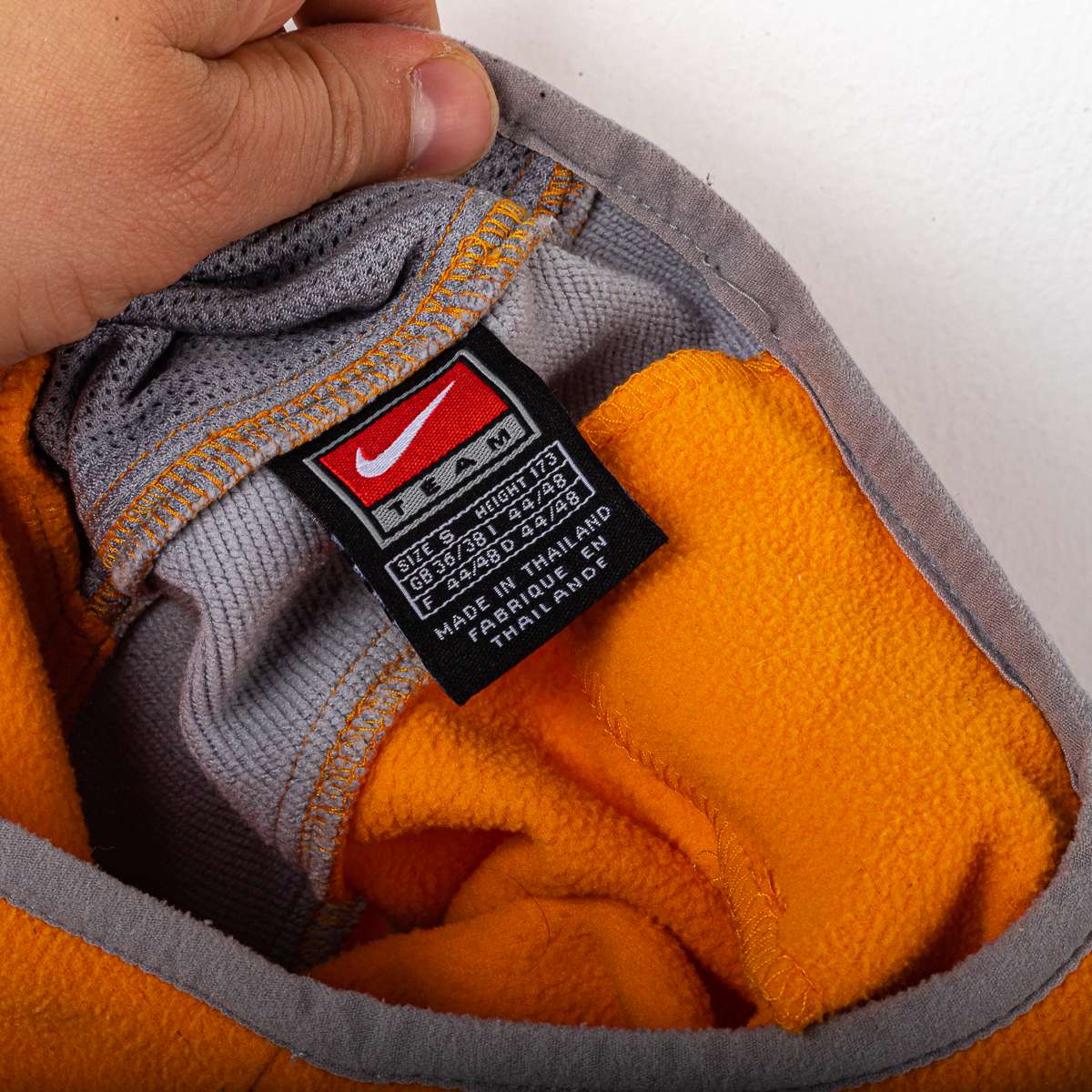 Orange fleece sweatshirt from the 2000/2001 football season. Produced by Nike for Inter Milan's winter kit. Inter logo applied in velvet on the sleeve; tone-on-tone embroidered snake on the sleeve. Nike logo embroidered in grey. Size S. Made in Thailand.