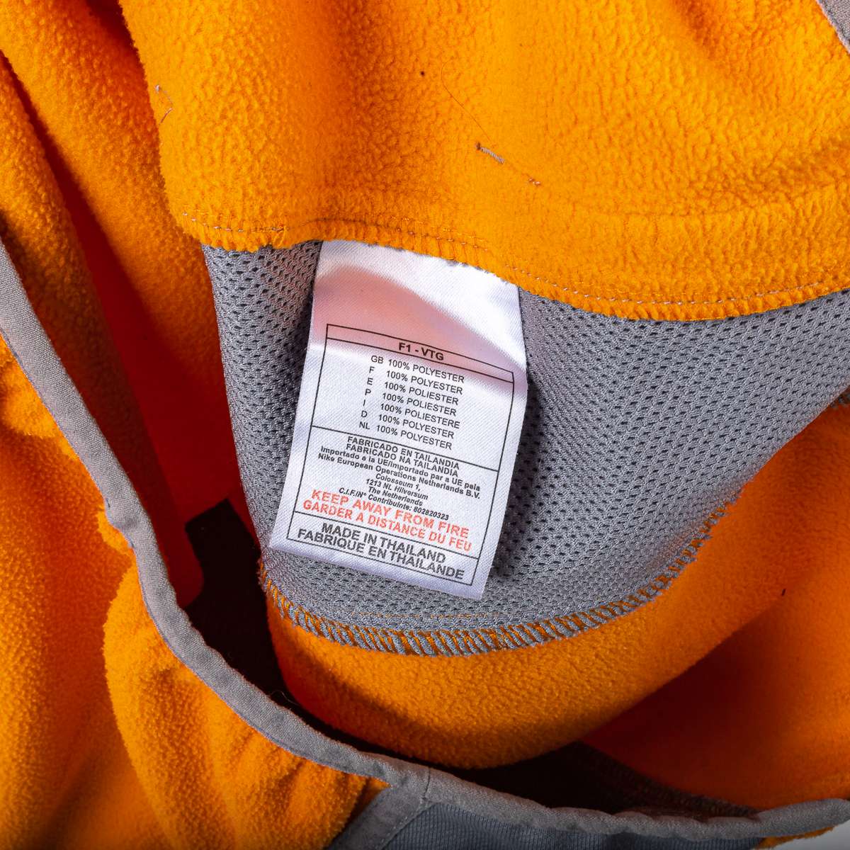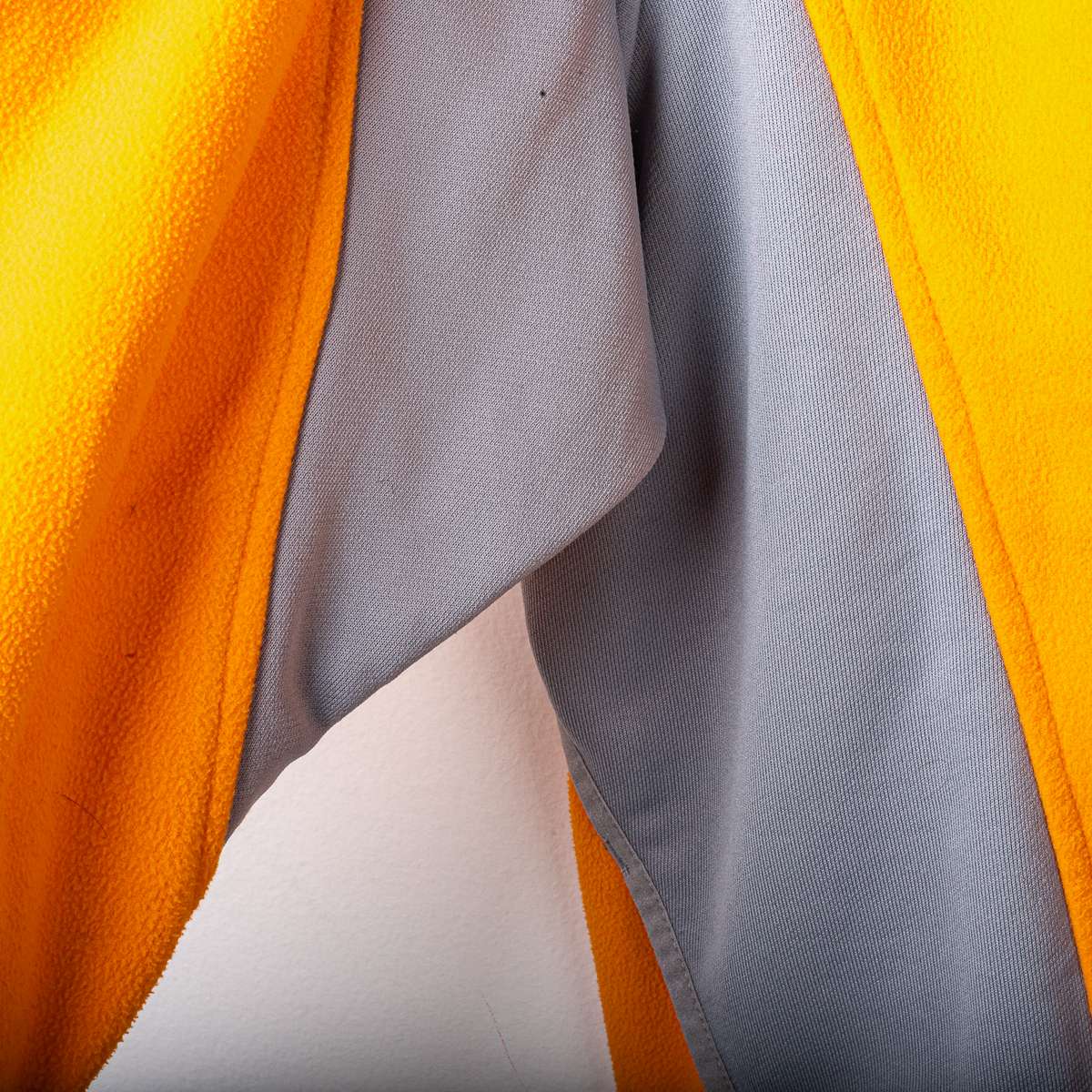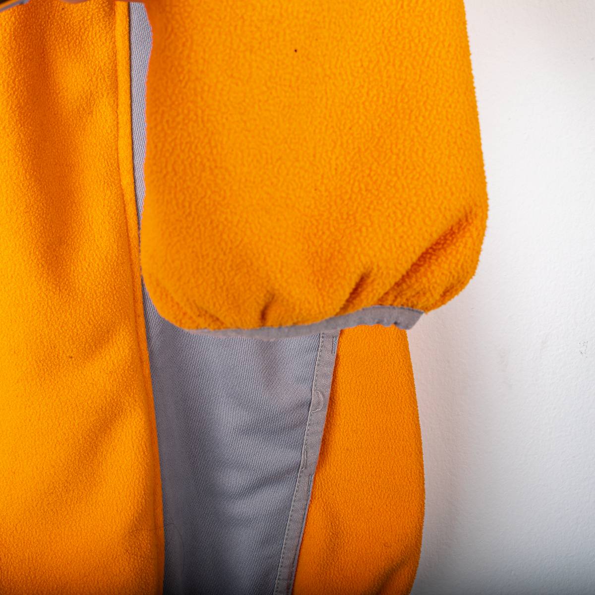 Orange fleece sweatshirt from the 2000/2001 football season. Produced by Nike for Inter Milan's winter kit. Inter logo applied in velvet on the sleeve; tone-on-tone embroidered snake on the sleeve. Nike logo embroidered in grey. Size S. Made in Thailand.