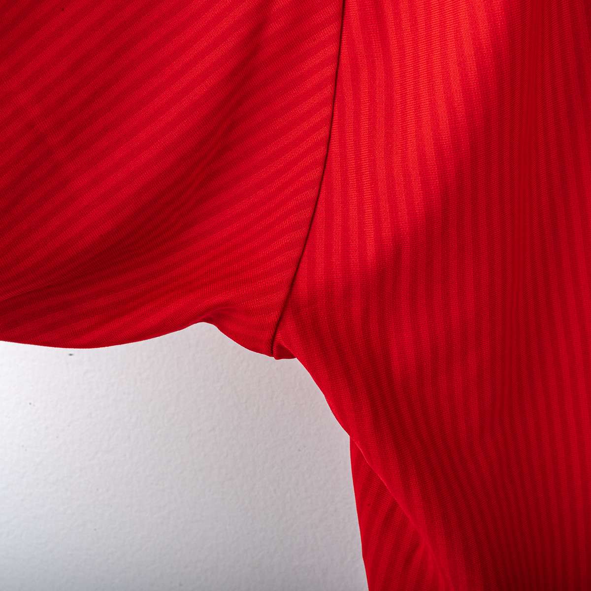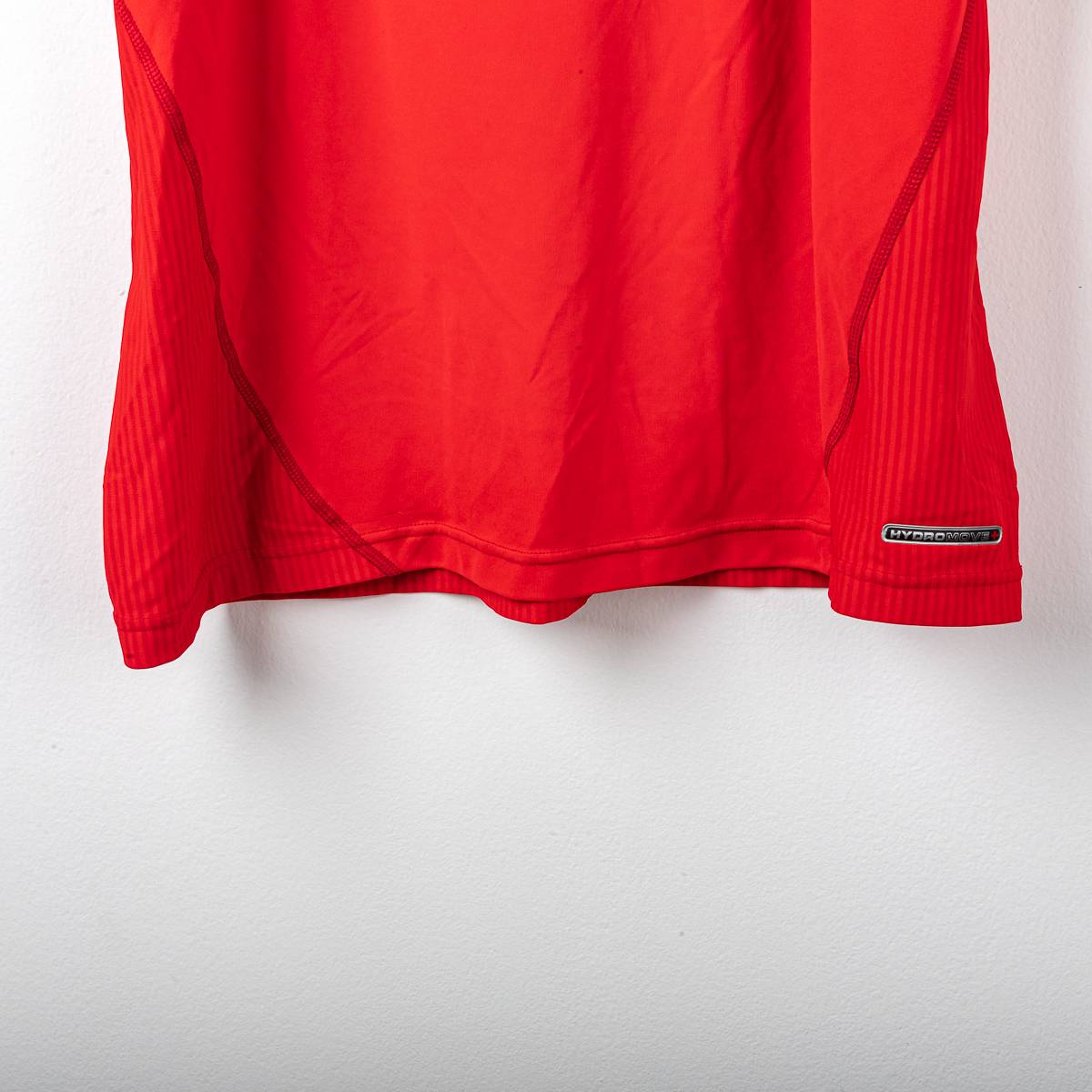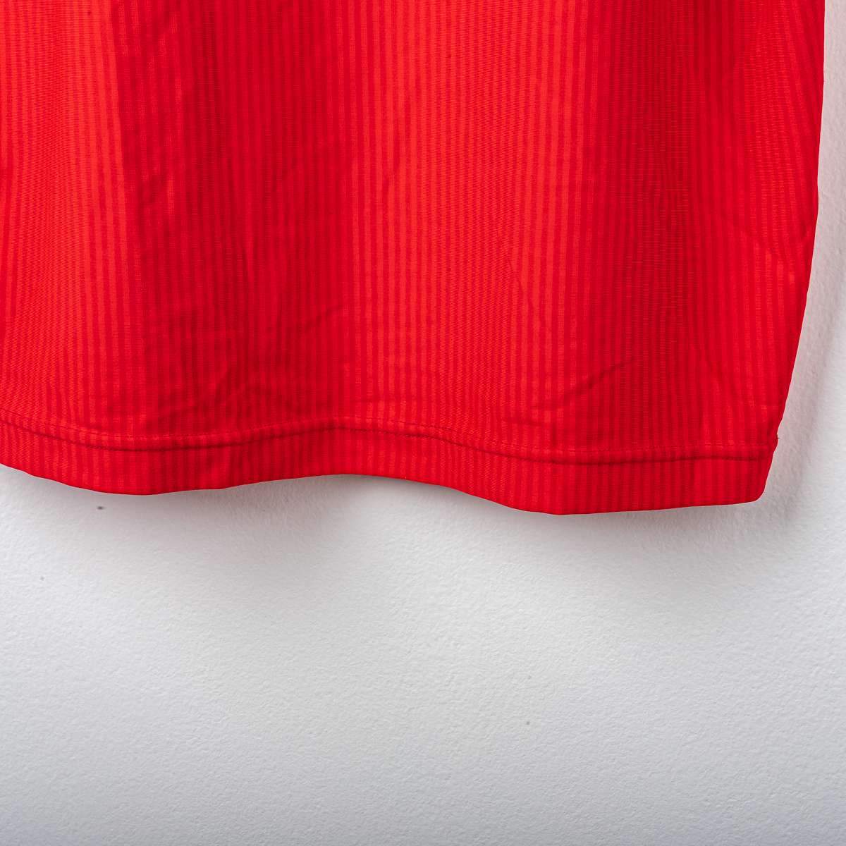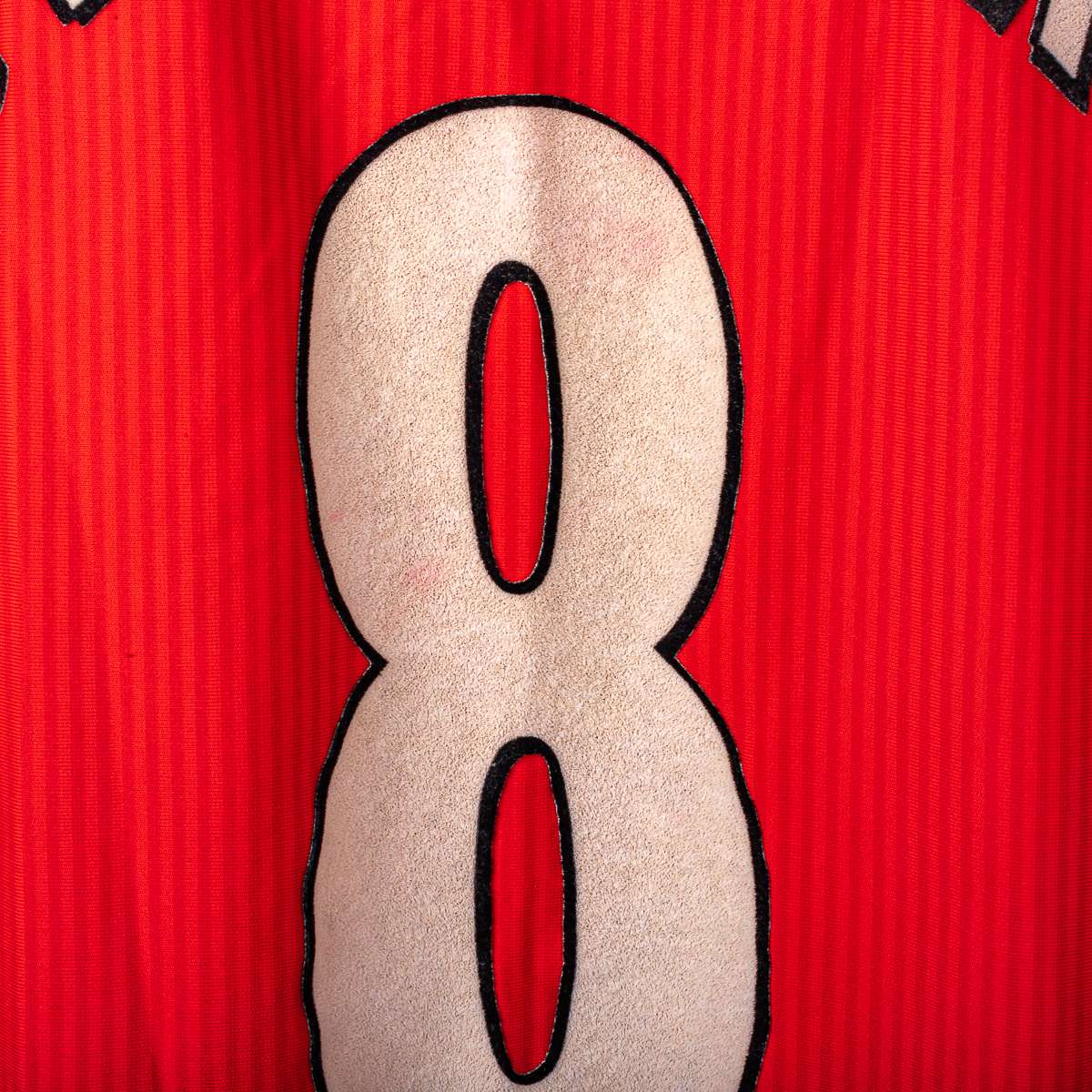 Liverpool FC home shirt from the 2002/2003 season, produced by Reebok. V-neck with double white and red insert, a distinctive detail of the model. Reebok logo applied on the chest, official Liverpool FC crest in flock at the center. "Carlsberg" sponsor applied in white flock print on the front. Official Barclays Premiership patches are applied on the sleeves. On the back, the name "Gerrard" and the number 8 are applied in white flock with a black outline, with the Premier League logo at the base of the number. Original Reebok inner label, size L.