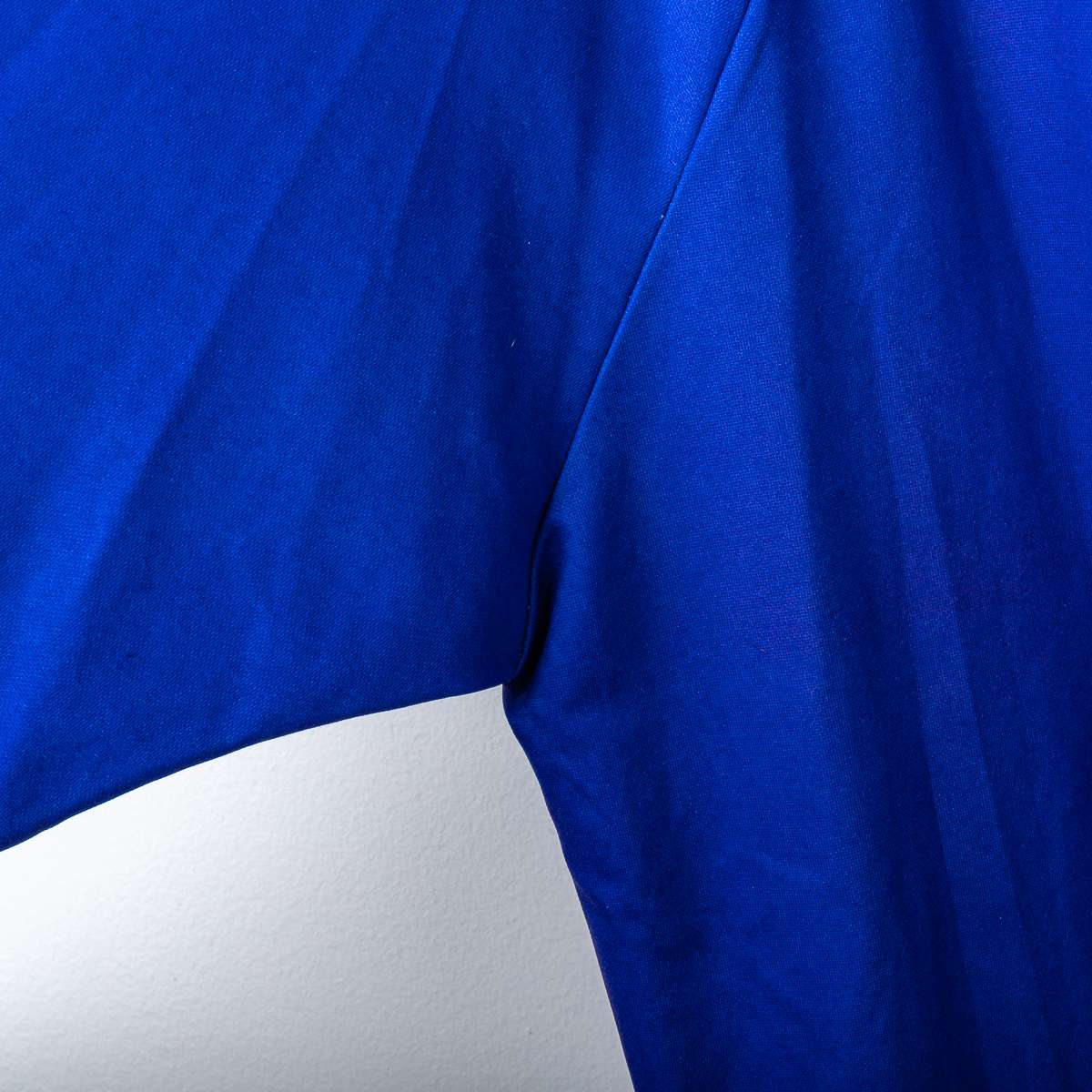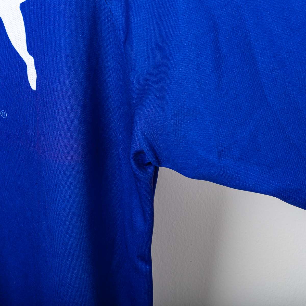 Official Parma AC training T-shirt from the 1995/1996 season, produced by Puma. Long-sleeved training shirt made of lightweight, breathable 100% polyester technical fabric in blue with contrasting yellow details. Two-tone blue and yellow high-stretch collar. Puma logo printed on the right chest, Parma AC logo printed on the left chest. Parmalat sponsor printed centrally on the front. Iconic Puma logo stripes repeated along the sleeves in yellow. Large Puma logo printed on the back. Puma label inside with size L and Made in Italy production.