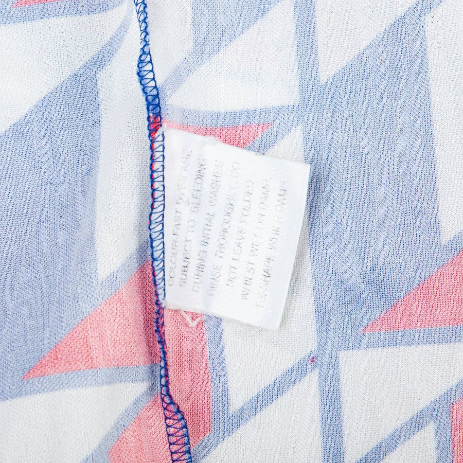 The product is well exposed by the different photos. The shirt has short sleeves, has a white collar, with blue and red lines, which closes with a button and is characterized by the blue color which is attacked by a myriad of white and red geometric shapes which occupy almost the entire article; the club logo is applied to the top left, while on the opposite side we find the white one of Umbro, technical sponsor; below these elements, the commercial sponsor of the Dutch, TDK, stands out.