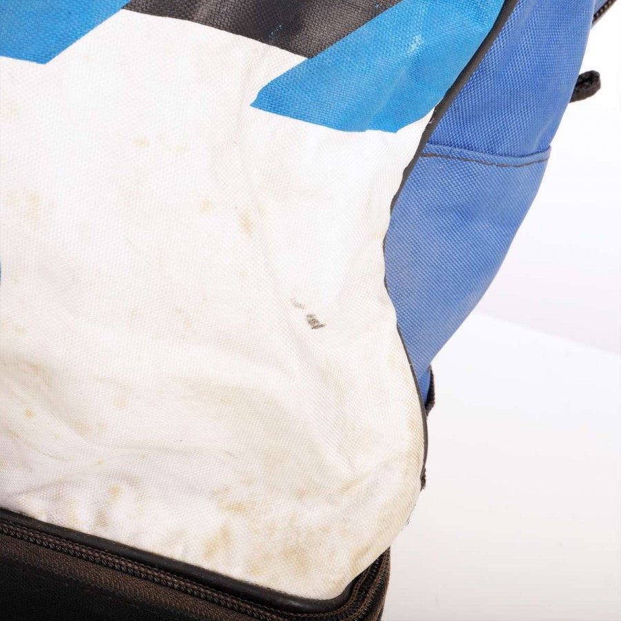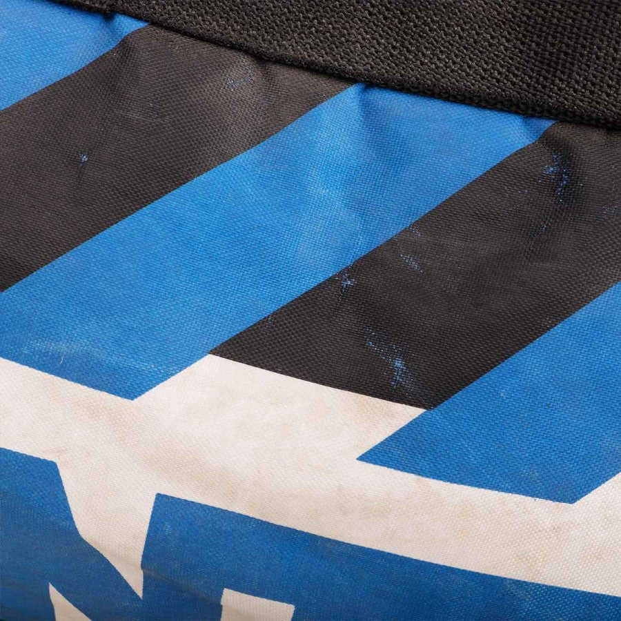 Official Inter duffel bag from Uhlsport with Sponsor Misura printed. White and blue color with black inserts. The bag features the Misura sponsor and Inter writing at the top on the central part. The Misura and Uhlsport sponsors are on the shoe rack.