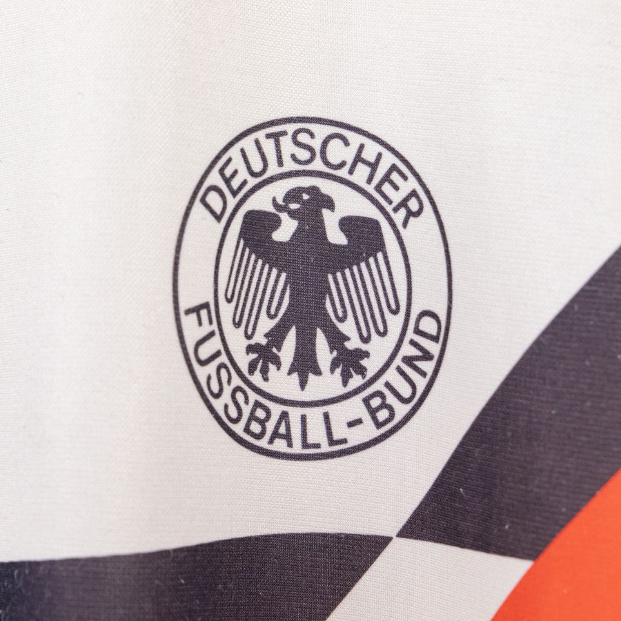 Short-sleeved Germany home jersey made by the technical sponsor Adidas in 1990. Size L.