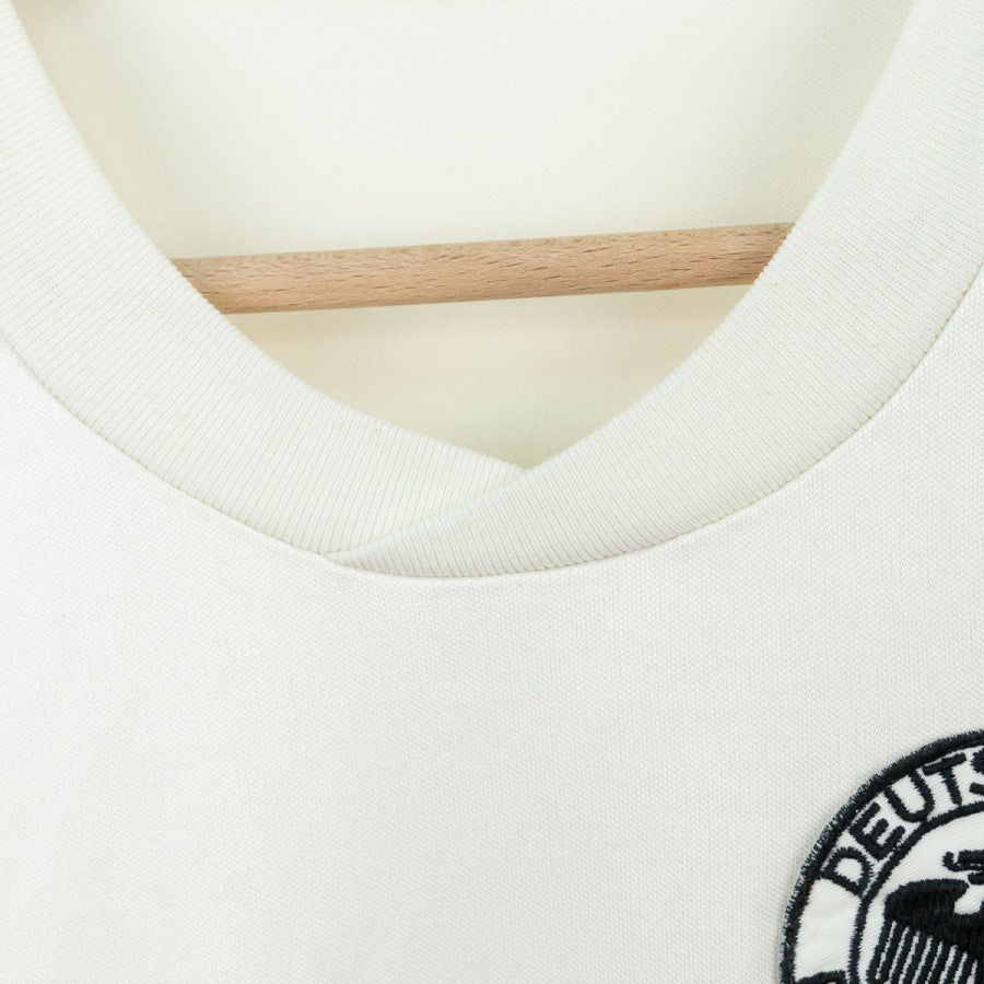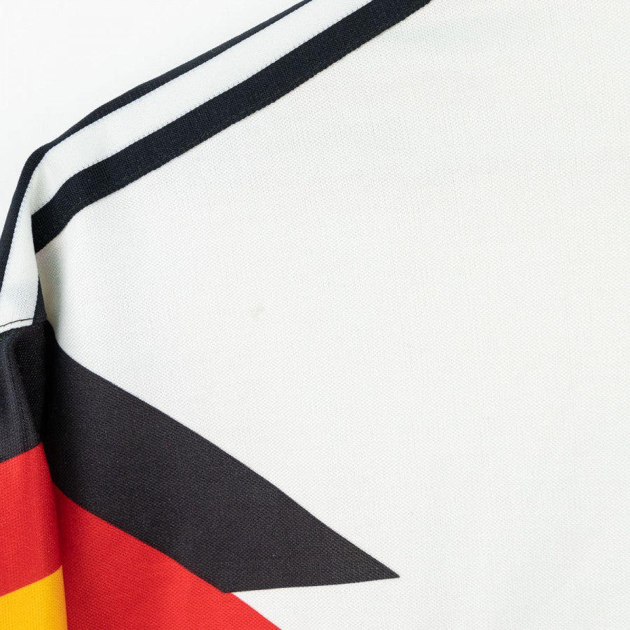 Discover the Germany National Team's home jersey for the 1990 season featuring embroidered German crest and Adidas logo.