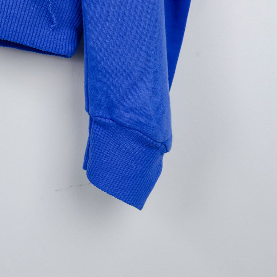 The blue and light blue long sleeve polo-style sweatshirt features the team name on the left chest, Umbro as the technical sponsor, and Voiello as the commercial sponsor on the front and back.