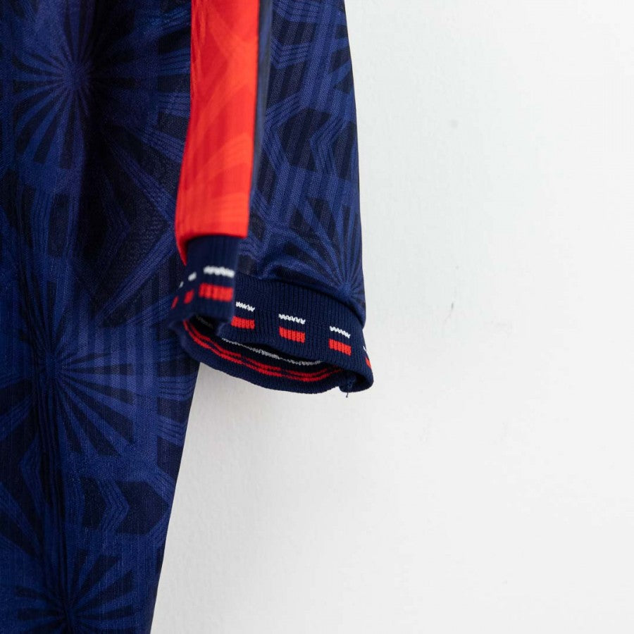 The team emblem is flock, while the logo is sublimated. Size XL. Commercial sponsor in sublimation.