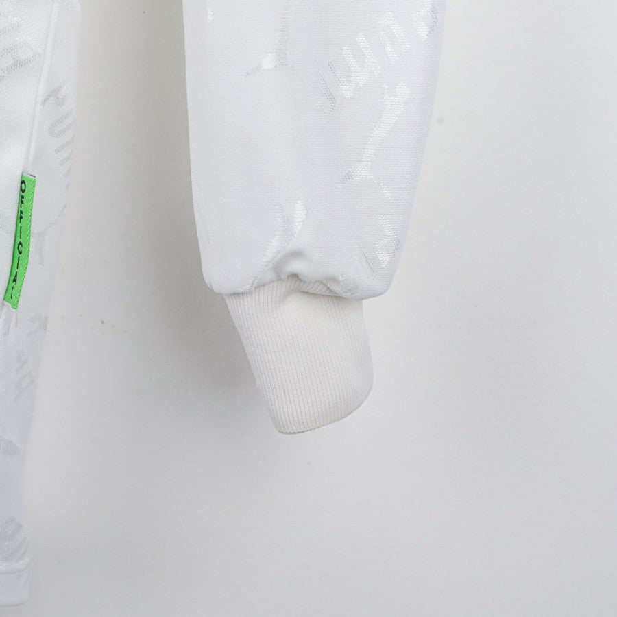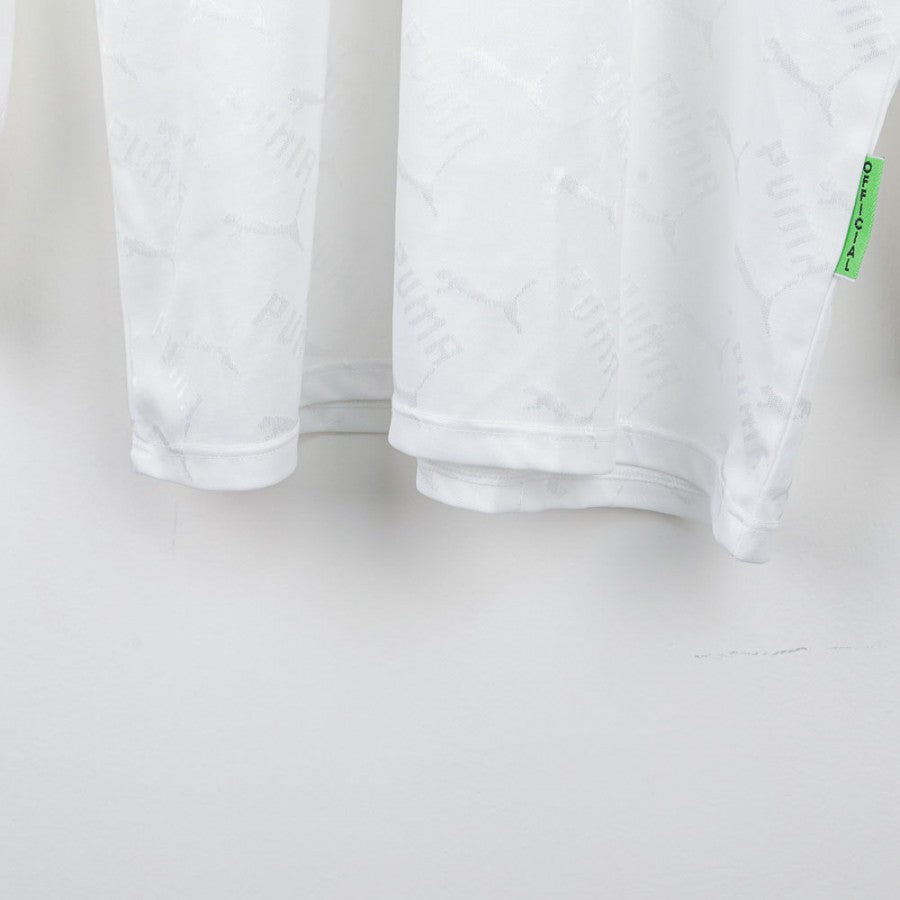 The white long sleeve jersey with blue details features the club crest on the left chest and the Puma sponsor logo on the chest.