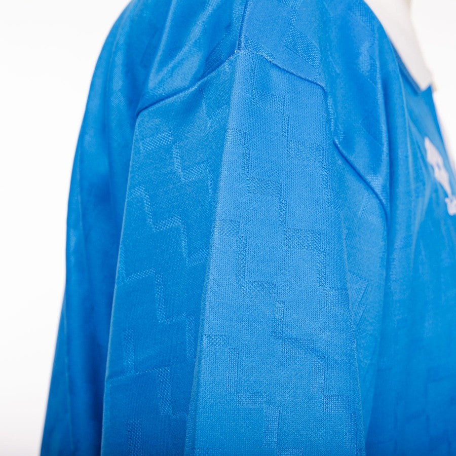 Napoli home jersey made by technical sponsor Lotto for the 1994/1995 season. Product preserved in excellent condition, fabric is soft to the touch, absent stitching defects, no halos or color discontinuity. Devoid of label, fit is an XL .