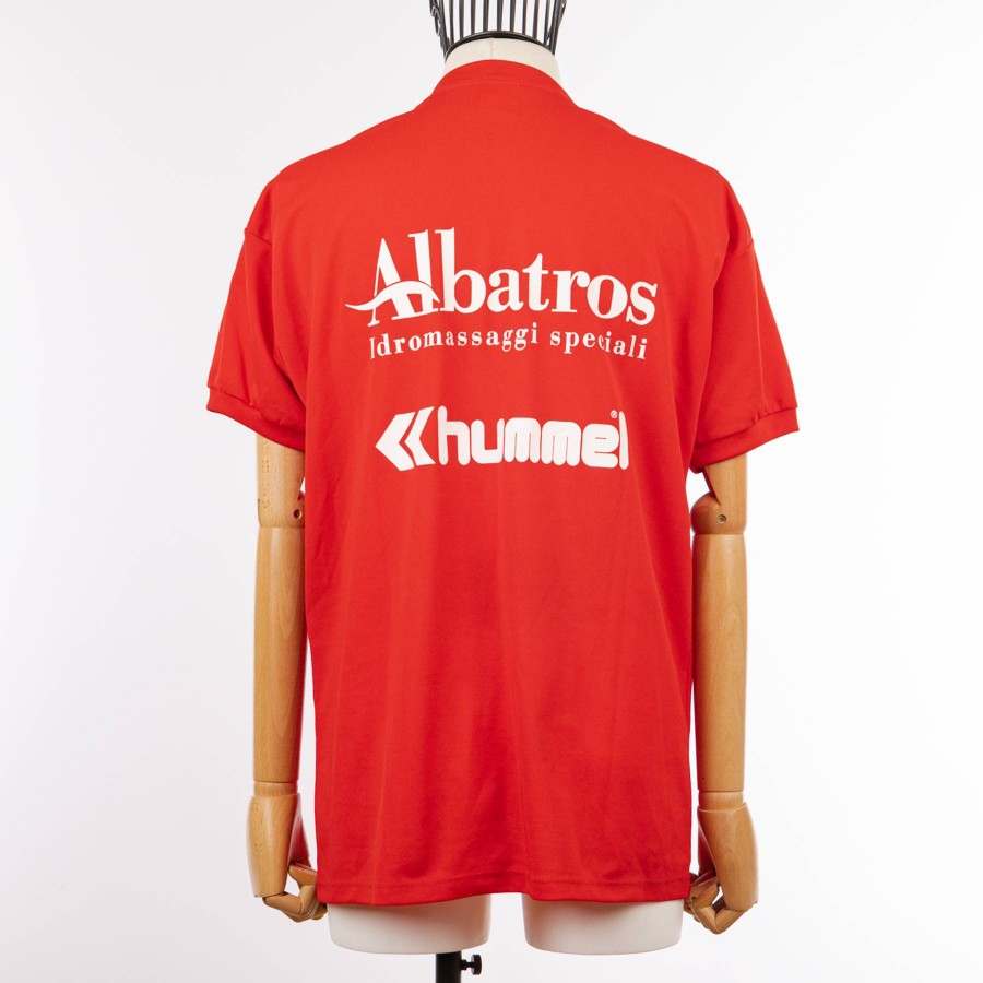 Red T-shirt supplied to the team and the technical staff, with jersey. Club crest stitched on the heart side, Hummel and Albatros made in sublimation both on the front and on the back