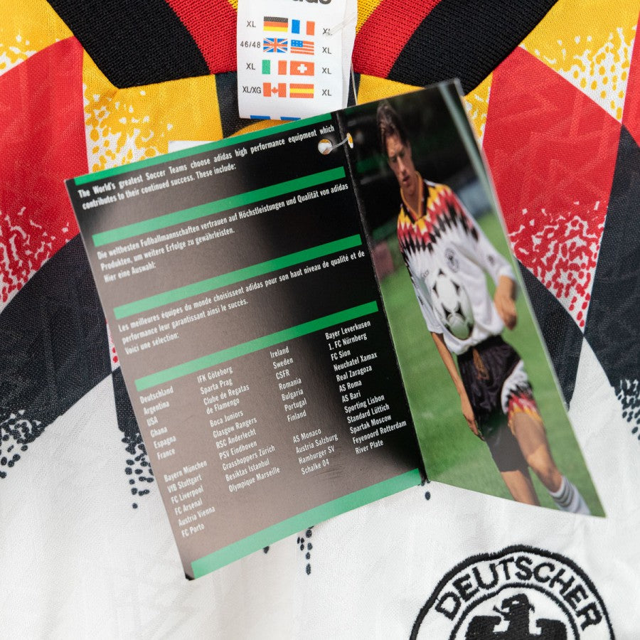 Explore the 1994 Home jersey of the German National Team, featuring embroidered Adidas logo and National Team crest.