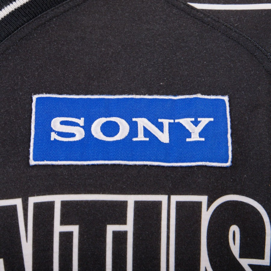 The product in question is well exposed by the various photos. The shirt has short sleeves and its prevailing color is black; the wording JUVENTUS stands out in the center of the article, while the commercial sponsor, SONY, is sewn above it on the left, while on the opposite side, the Kappa logo, technical sponsor, is embroidered in white with gray edges, with annexed denomination; on both sleeves the logo of the technical sponsor is embossed, in sublimation and in repetition.