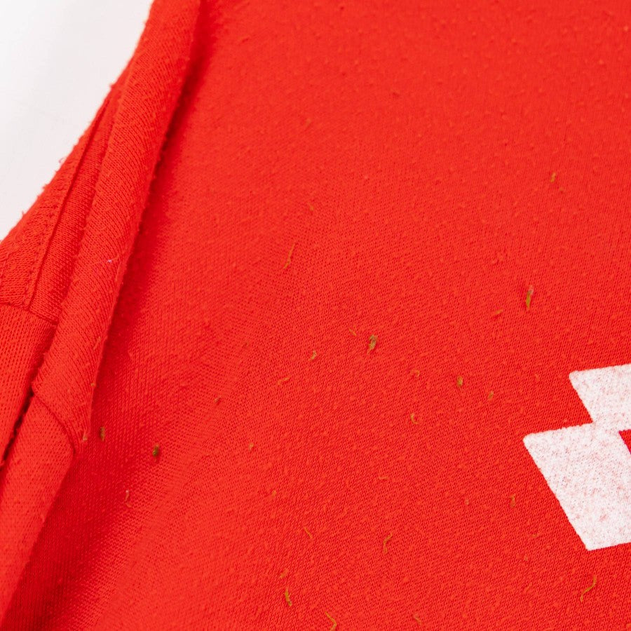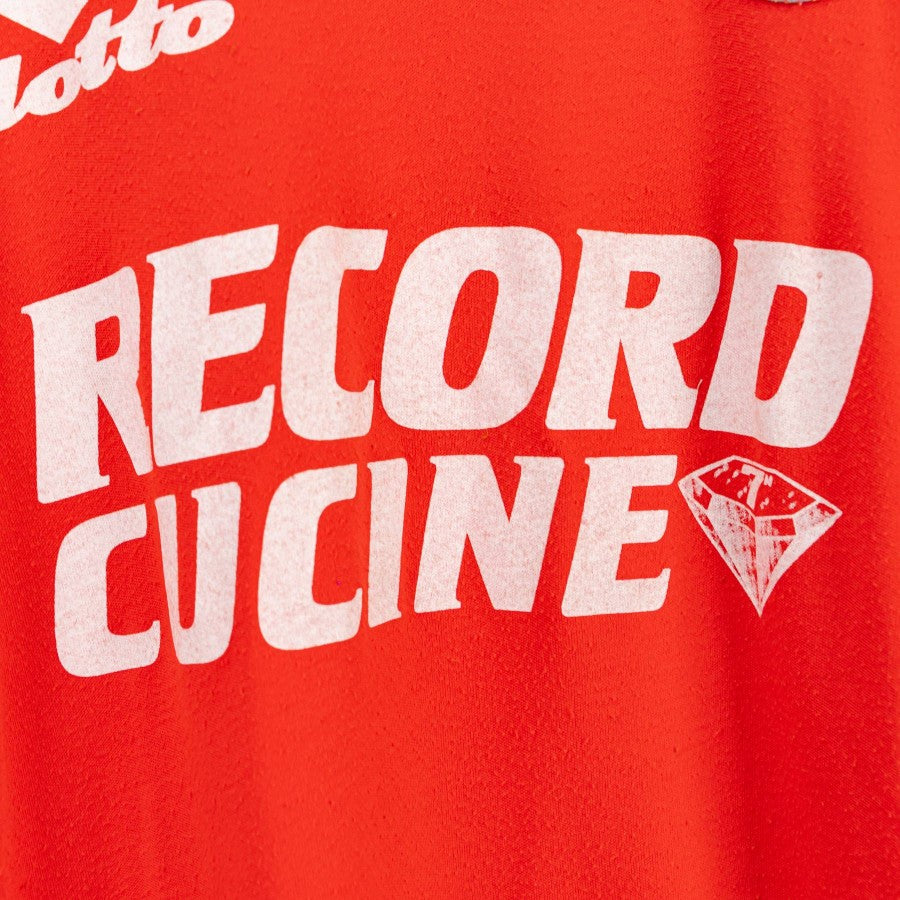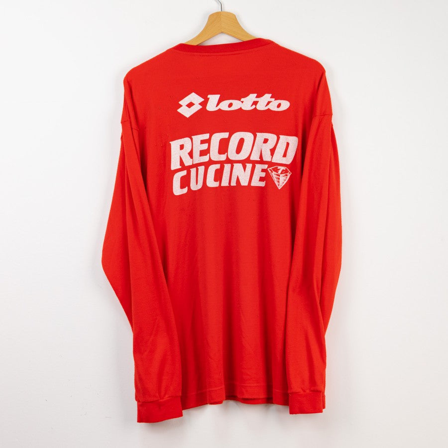 Red long-sleeved model with crew-neck collar. On the right we find the Lotto sponsor logo, on the left the team crest. Below is the commercial sponsor Record Cucine.
