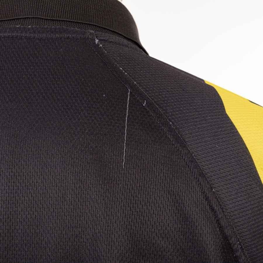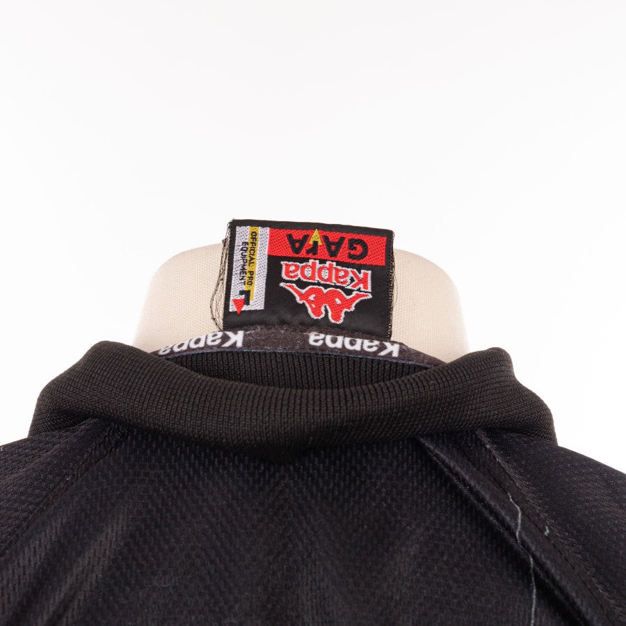 Very rare third model, long sleeves with polo collar, knit finishes. The commercial sponsor Sony is in sublimation as well as the fantasy in yellow. Sublimatic Juve logo on the collar. Embroidered Kappa logo, embroidered stars.
