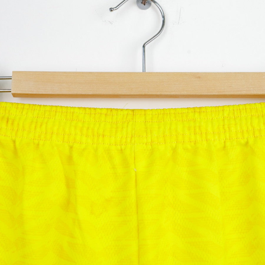 The yellow shorts with blue details feature the team crest on the right leg and the Umbro logo.