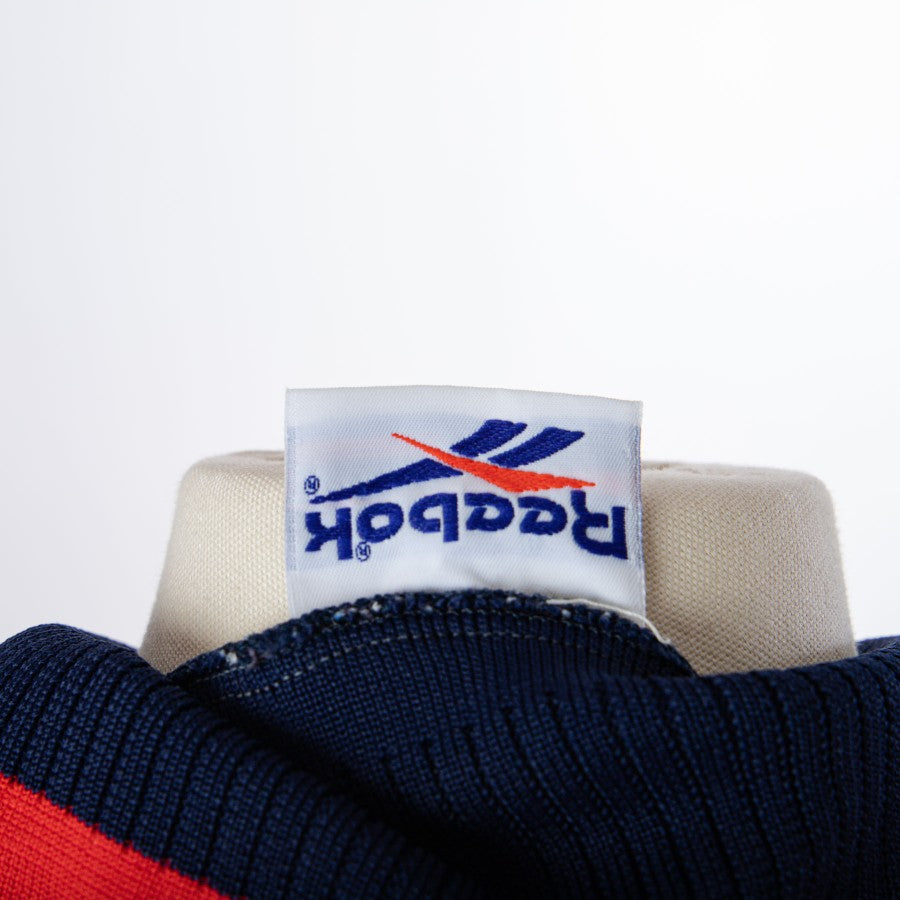 On the front are applied the team patch on the heart side and the Reebok logo on the right.