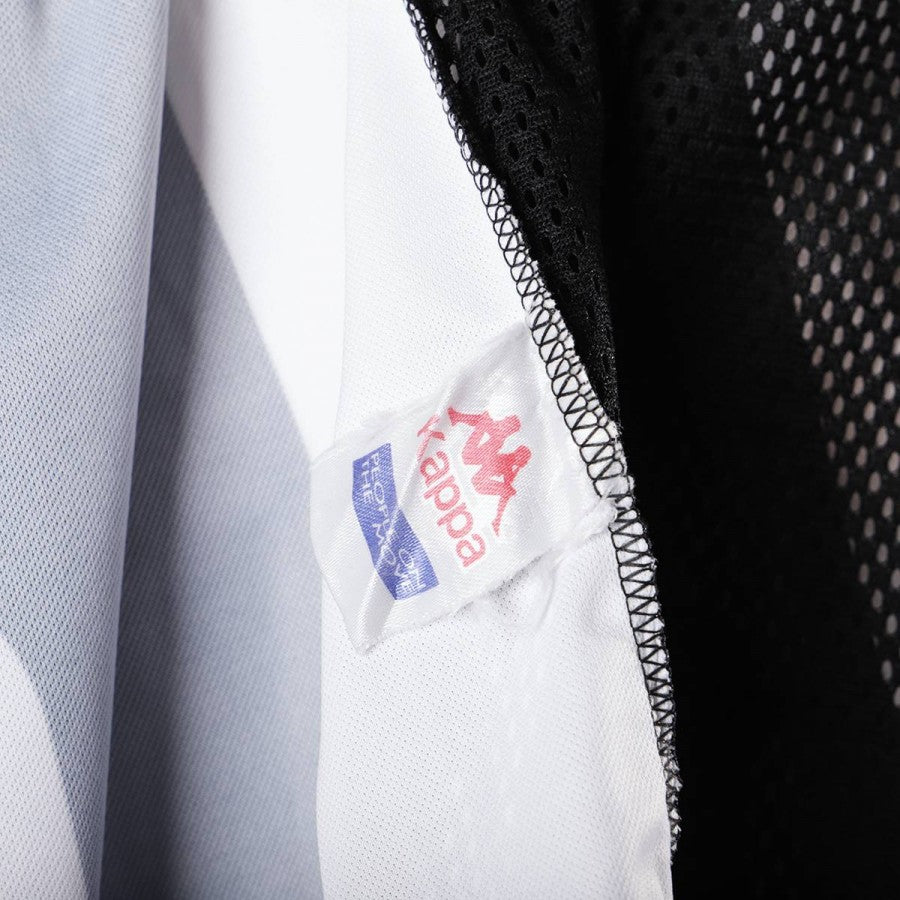 The shirt is characterized by two different fabrics, we note that the fabric is perforated on the sides and then breathable. The colors are the classic black and white and the neckline is a polo shirt. On the frontal part is sewn the tricolor shield on the heart side, while the little Kappa men are embroidered on the right side. On the back, DEL PIERO lettering and the number 10 are printed. Finally, the Juventus patch, with the two stars, are embroidered on the left sleeve.