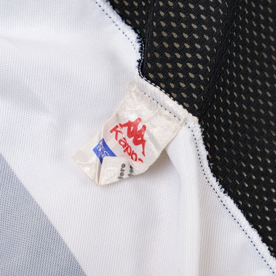 Long-sleeved Juventus home jerseymade by technical sponsor Kappa and worn by number 9 Inzaghi during the 1997/1998 season. The model is in perfect condition, the colors are strong and not faded, the fabric has no stretch marks or other signs of wear, except for the athlete's name printed on the back. XL size.