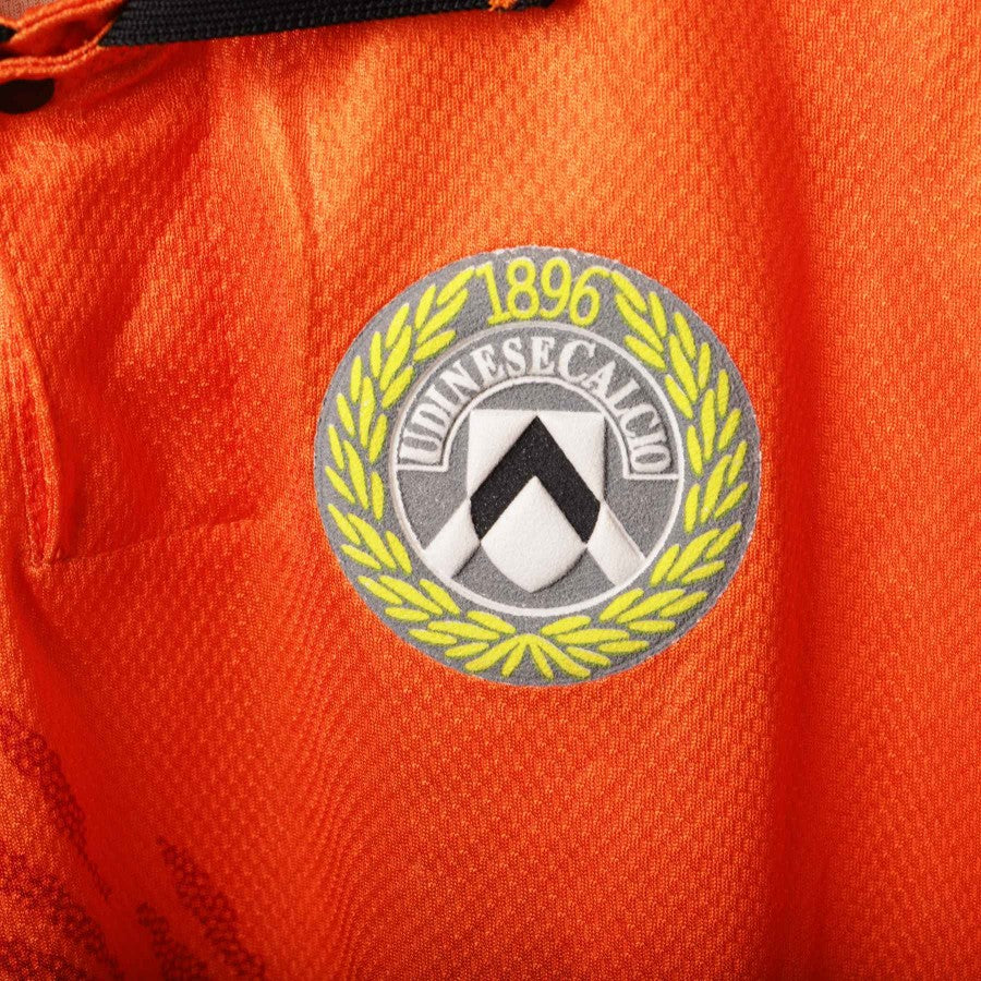 Away model produced by Hummel for the 1997/1998 season. Orange colour and black details. Short sleeve and polo collar with snap button. On the front the team patch and the technical sponsor Hummel are applied in flock. The commercial sponsor is Atreyu. On the back is the customisation CAPPIOLI 27. Football league patch stitched on the right sleeve.